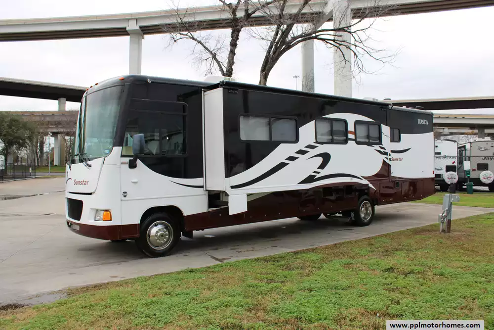 This 2011 Sunstar 35F is a well-crafted motorhome designed to offer comfort and convenience for travelers seeking adventure on the road.It delivers reliable performance and smooth handling for long journeys.Features Include...6.8l V10 Ford Engine On a Ford Chassis, 2 Slide-outs, Onan Gas Generator, 2 Ducted Air Conditioners,Levelers,Double Door Gas/110v Norcold Refrigerator, In-Fridge Ice Maker,Unit is Winterized,Automatic Main Awning And Slide Awning, Backup Camera,Satellite Receiver,Outside Entertainment System,3 TVs,Outside Shower, Microwave,3 Burner Range,and Oven.With Winnebago's legendary build quality and attention to detail,it is ideal for both weekend getaways and extended road trips, delivering a comfortable and reliable RV experience.