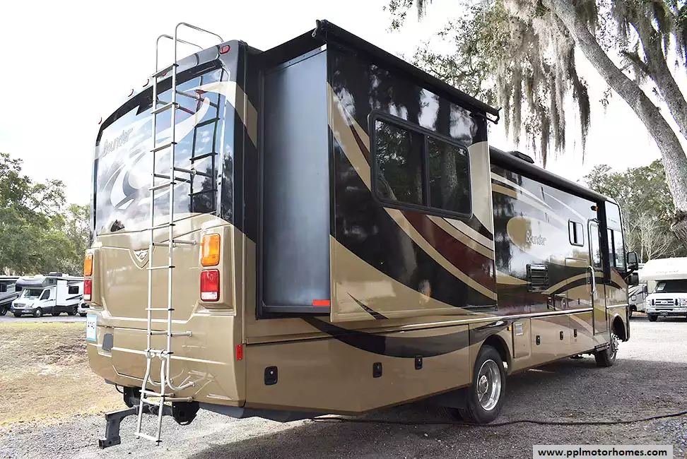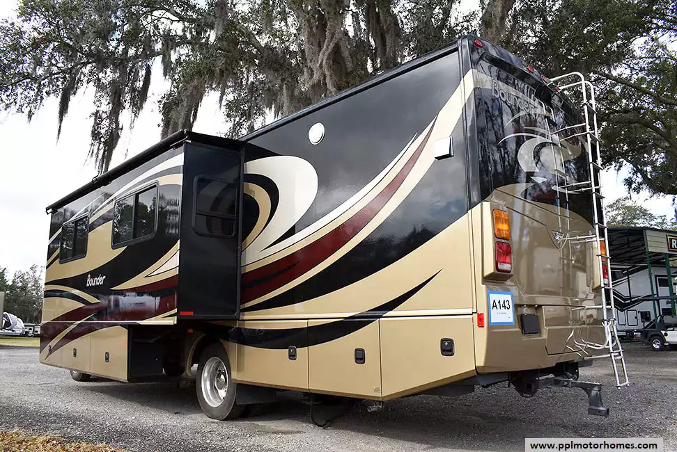 This 2013 Bounder 33C has a V10 Ford Engine On a Ford Chassis, 2 Slide-outs, Onan Gas Generator, 2 Ducted Air Conditioners, Levelers, 4 Door Gas/110v/12v Dometic Refrigerator, Automatic Main Awning And Slide Awning, Washer/Dryer, Backup Camera, Solar Panel, Satellite Receiver, Outside Entertainment System, 2 TVs, DVD Player, Outside Shower, Fireplace, Convection Microwave, 3 Burner Range