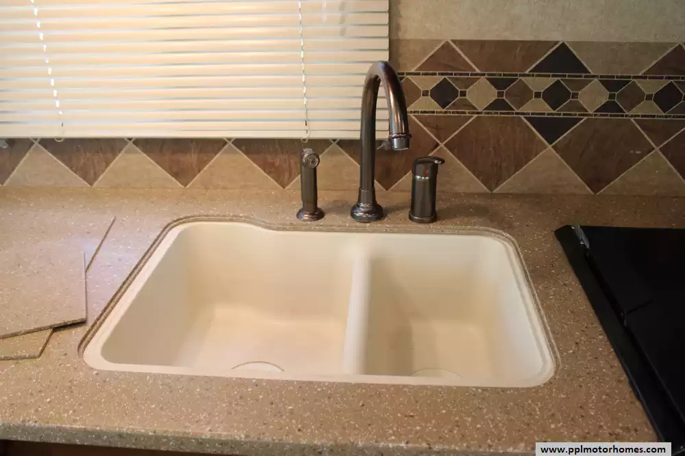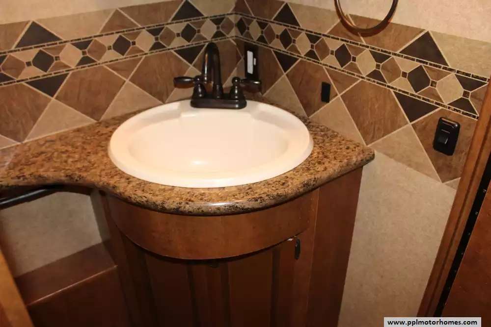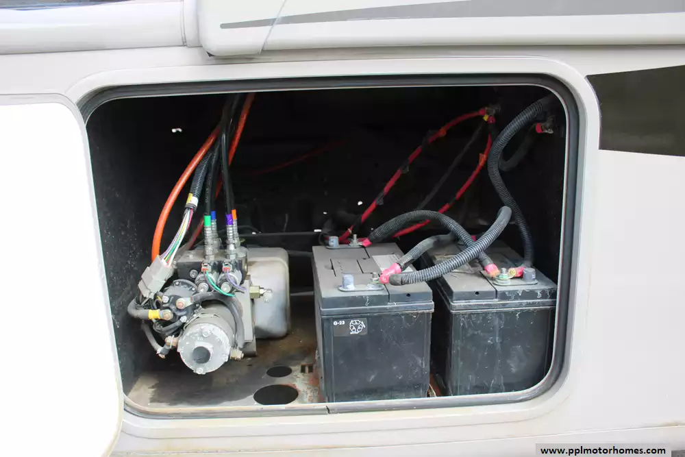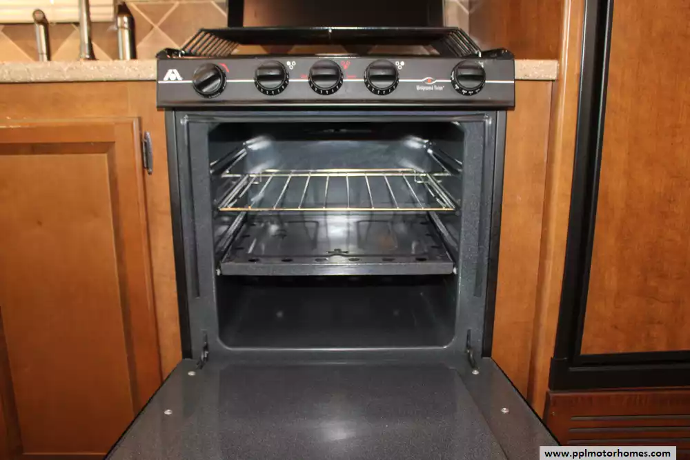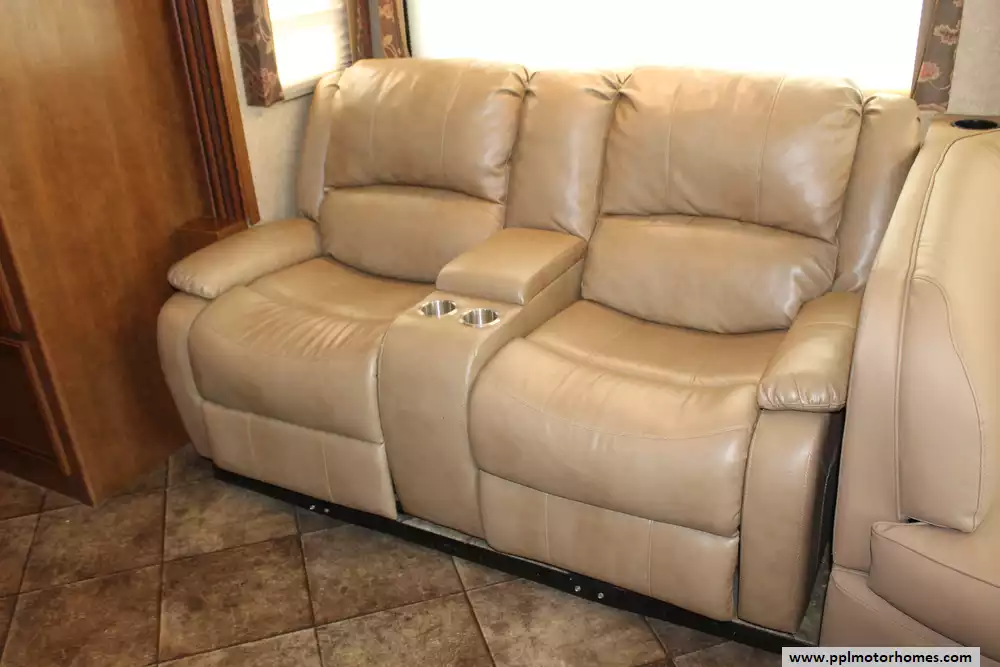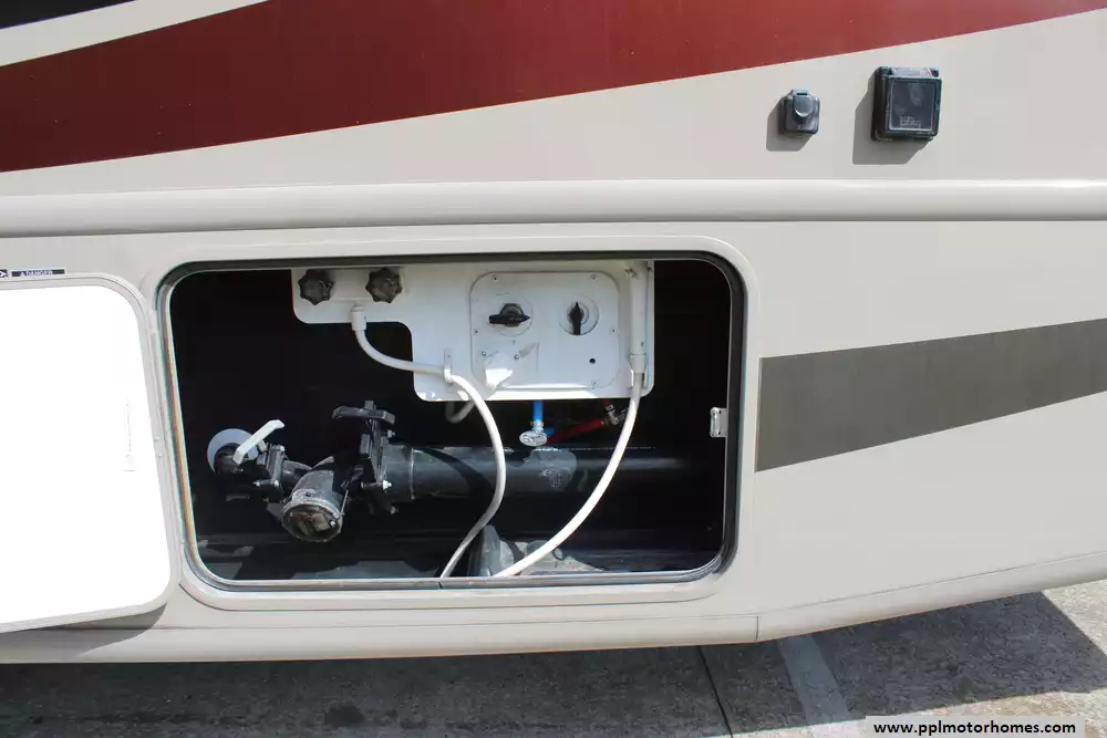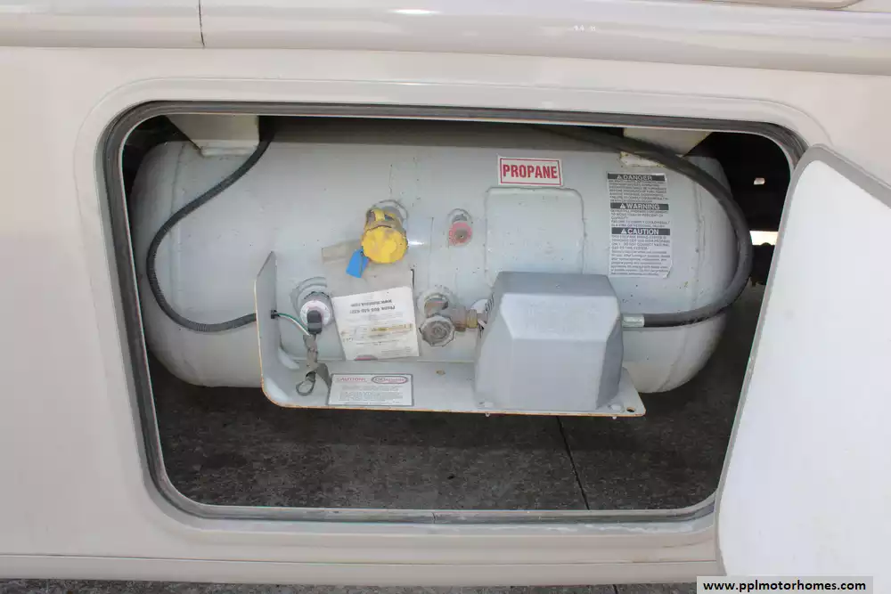 Specs: Length: 35.42 ft.,Width: 8.25 ft., Height: 11.92 ft.,Interior Height: 6.83 ft, Fuel Capacity: 80 gal.,Total Fresh Water Tank Capacity: 50 gal.,Total Gray Water Tank Capacity: 44 gal.,Total Black Water Tank Capacity: 75 gal.,Total Number of Propane Tanks: 1.,Total Propane Tank Capacity: 88 lbs.