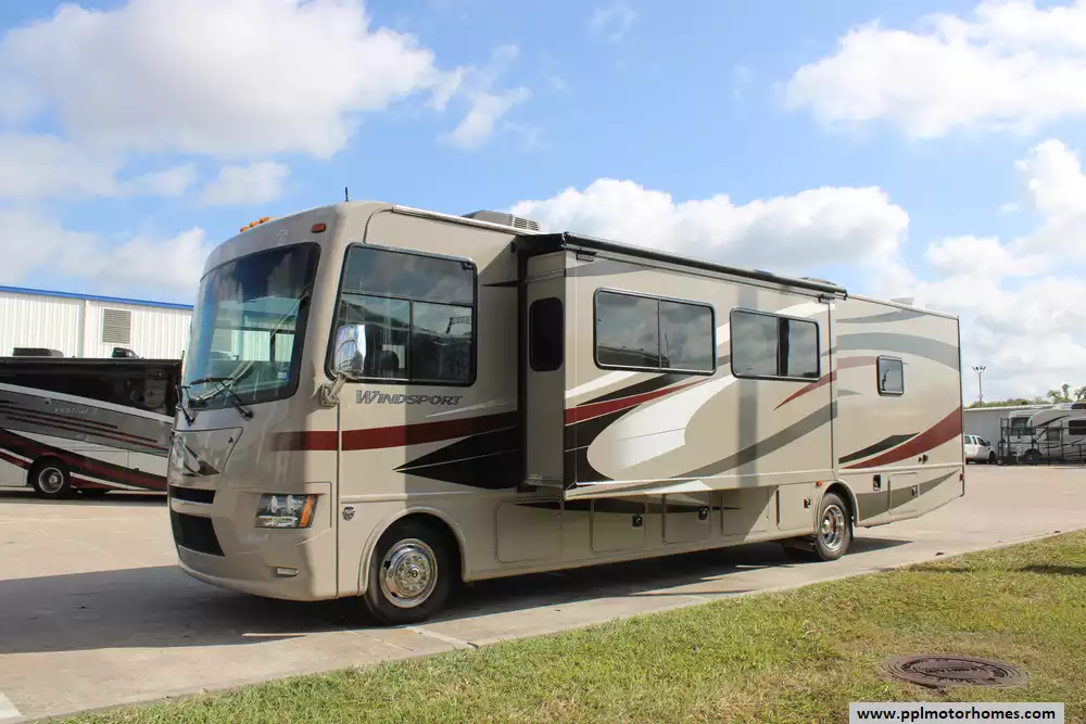 This 2014 Windsport 34E is a spacious and well-designed motorhome,perfect for families or couples looking to travel in comfort and style.It delivers reliable performance and power,making it a great choice for long-distance trips and cross-country adventures.Features Include...V10 Ford Engine On a Ford Chassis, 2 Slide-outs, Onan Gas Generator, 2 Ducted Air Conditioners, Levelers, Double Door Norcold Refrigerator, Automatic Main Awning And Slide Awning, Backup Camera, Heated Tanks, 3 TVs, DVD Player, Satellite Radio, Outside Shower, Microwave, 3 Burner Range,and Oven.This motorhome is designed for both comfort and practicality,offering a great balance of luxury and functionality for any RV adventure.