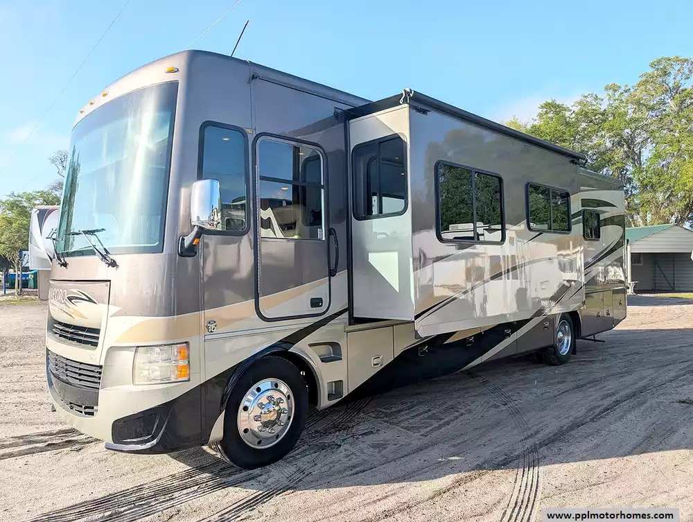 Experience the gold standard of Class A motorhomes with this 2014 Allegro by Tiffin 34TGA. Renowned for their legendary craftsmanship and "Roughing It Smoothly" philosophy, Tiffin motorhomes are celebrated for their long-term durability and thoughtful engineering. This model sits at a sought-after 34-foot length, making it nimble enough to navigate national and state parks while offering an incredibly open living space thanks to three generous slide-outs. Built on a sturdy Ford chassis with a powerful 6.8L engine, it features a low-maintenance one-piece fiberglass roof and fiberglass body. Whether you are dry camping or at a premium resort, you will travel with peace of mind provided by an Onan gas generator, automatic leveling system, and two ducted air conditioners.