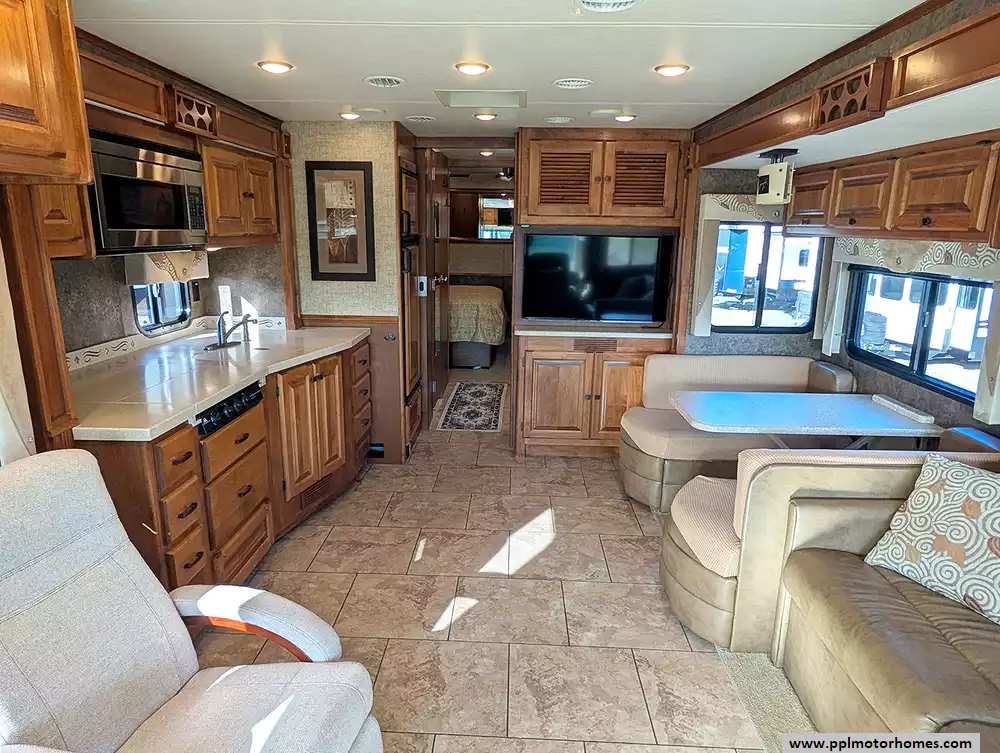 (Floor plan is NOT drawn to scale. Length of vehicle is approximate. Buyer is responsible for verifying actual length. PPL Motor Homes compiled this list of features, specifications, equipment and options as a guide. No representation or warranties, either express or implied, are made as to the accuracy of the information herein. Please verify for yourself all items listed before purchase.)