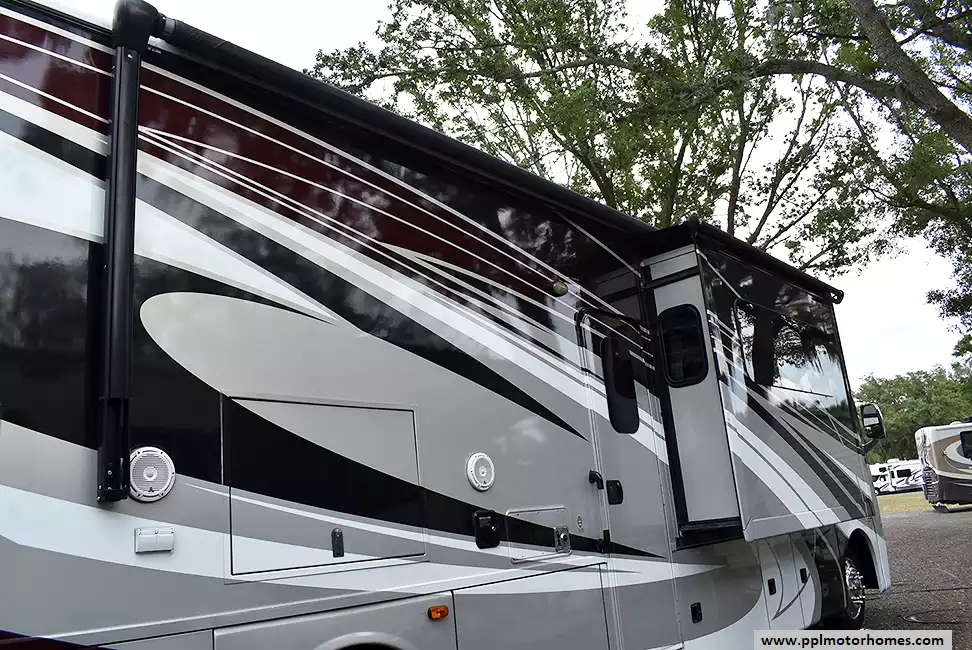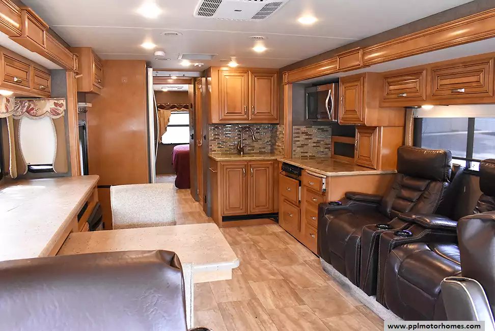 (Floor plan is NOT drawn to scale. Length of vehicle is approximate. Buyer is responsible for verifying actual length. PPL Motor Homes compiled this list of features, specifications, equipment and options as a guide. No representation or warranties, either express or implied, are made as to the accuracy of the information herein. Please verify for yourself all items listed before purchase.)