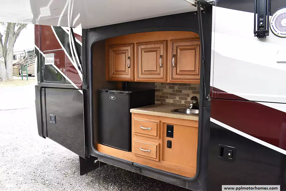 This well-maintained unit features brand-new theater seats, a new awning, and a new ladder. Enjoy the convenience of dinette seating and an outdoor kitchen-perfect for relaxing and entertaining on the road!