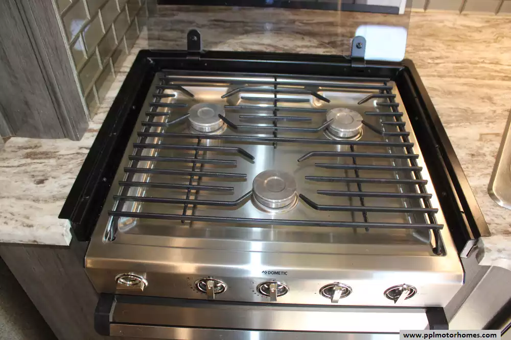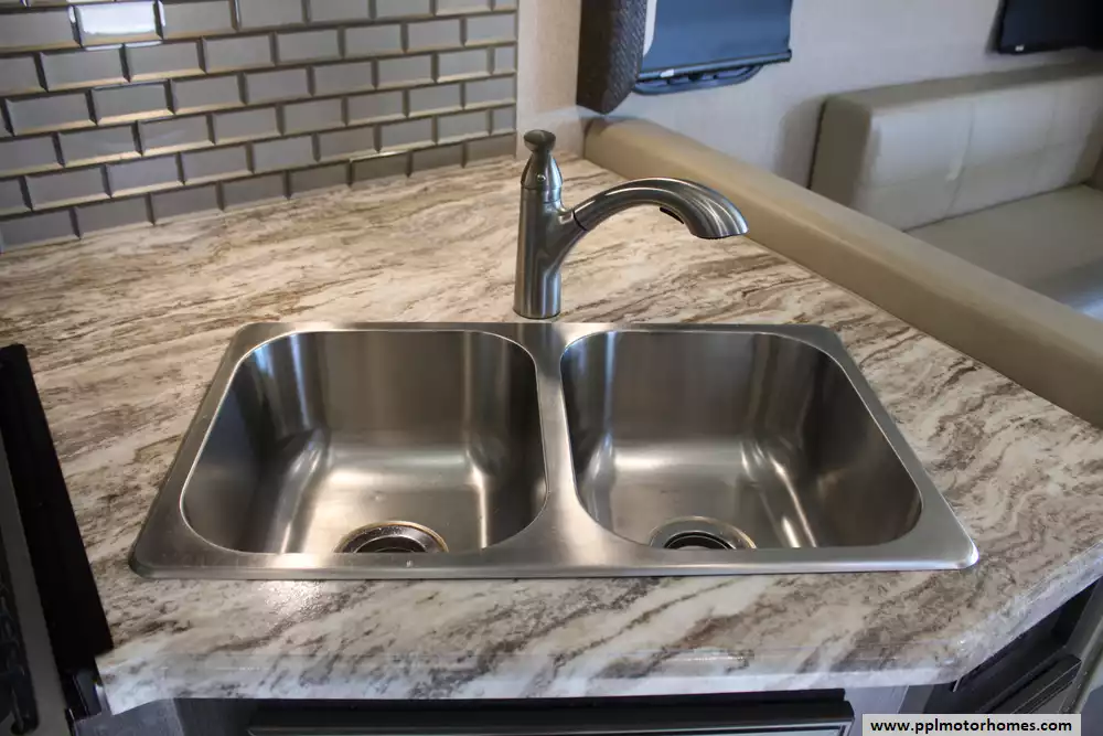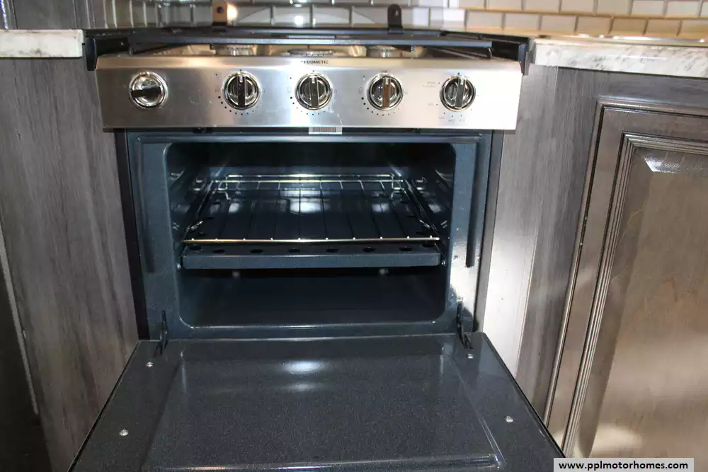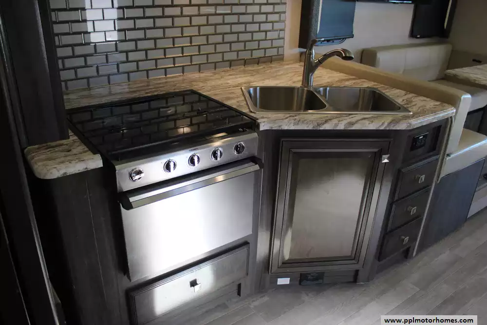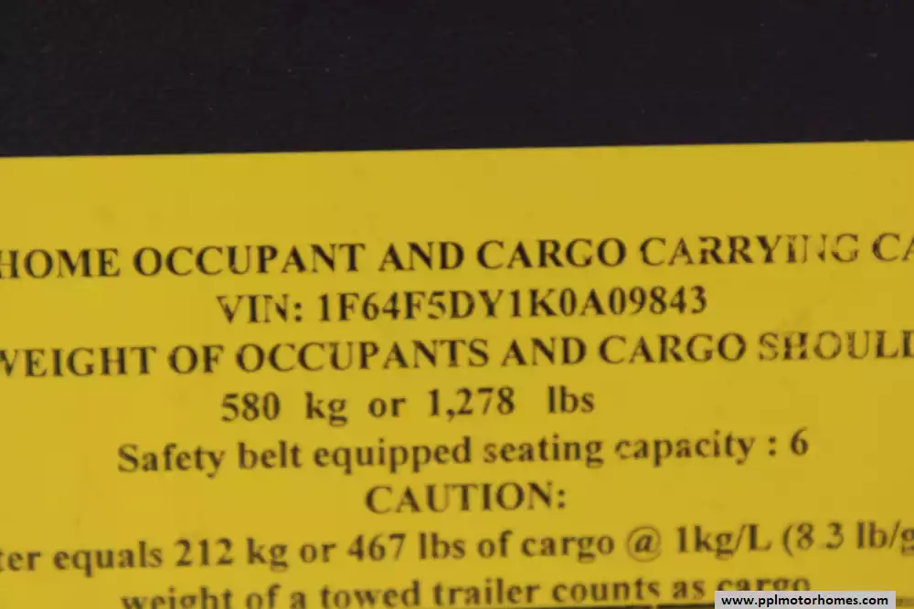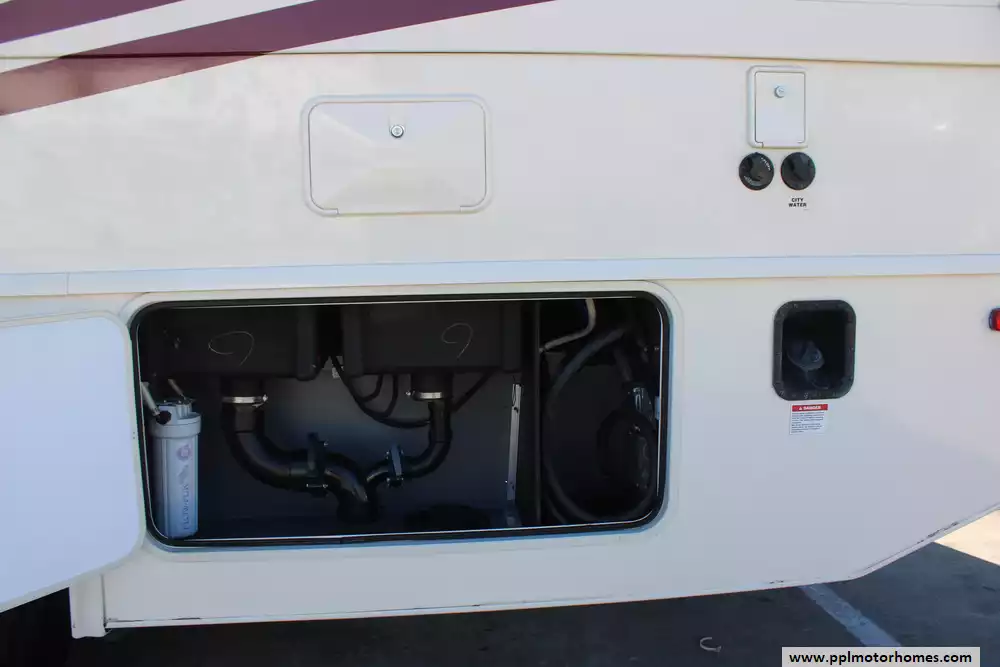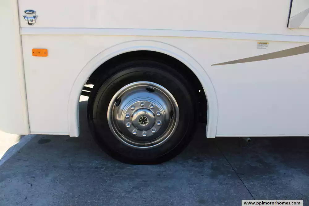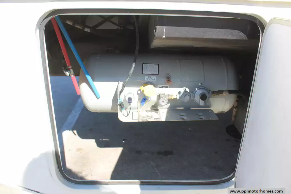 Specs: Length: 29.3 ft., Width: 8 ft., Height: 12.6 ft., Interior Height: 6.10 ft., Fuel Capacity: 80 gal., Total Fresh Water Tank Capacity: 50 gal., Total Gray Water Tank Capacity: 37 gal., Total Black Water Tank Capacity: 37 gal., Total Propane Tank Capacity: 14 gal.