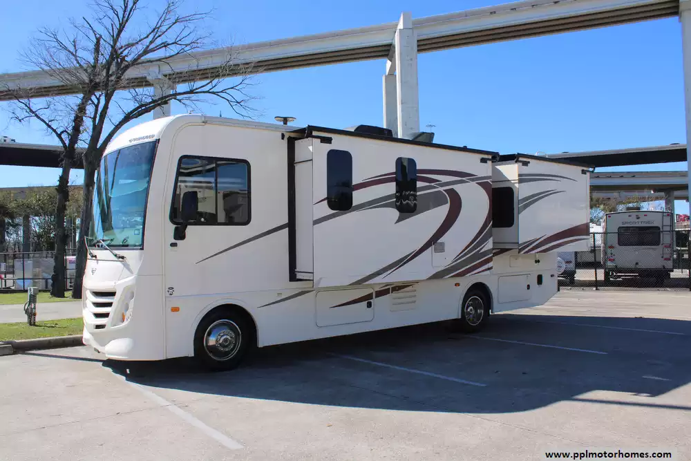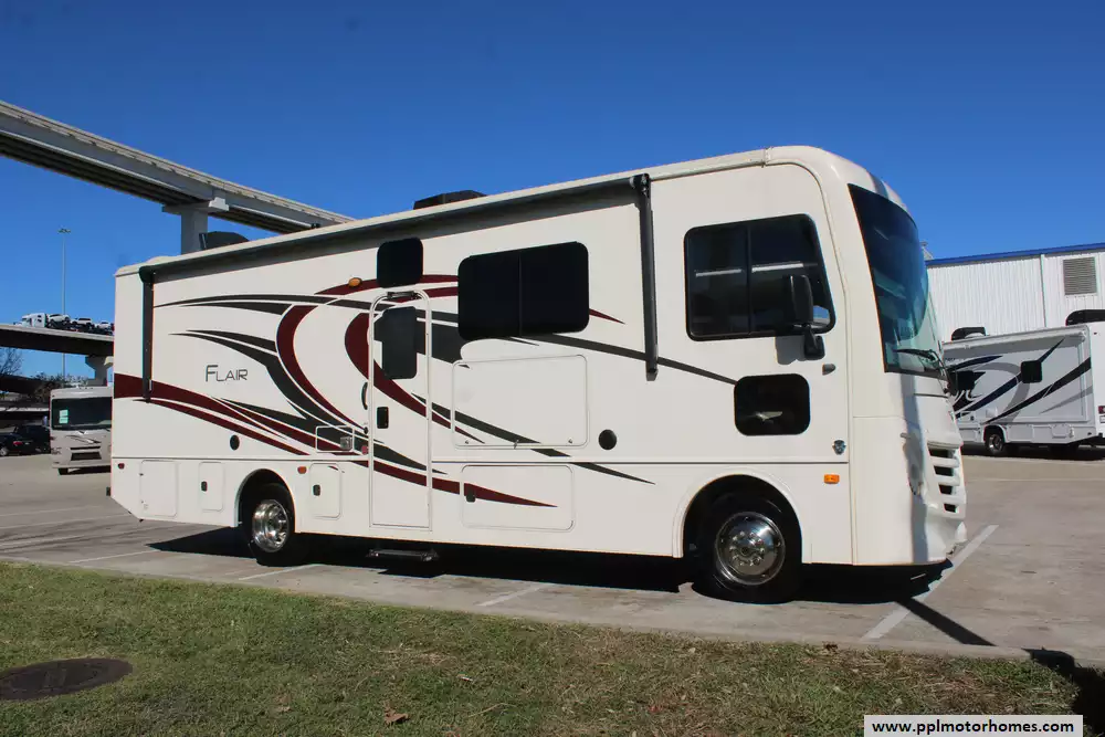 This 2020 Flair by Fleetwood 28A is ideal for highway driving and weekend getaways. It offers a blend of home-like comforts and travel durability in a relatively compact package. Amenities Include...V10 6.8l Ford Engine On a Ford Chassis, 2 Slide-outs, Onan Gas Generator, 1 Ducted Air Conditioner, Levelers, Double Door Residential Insignia Refrigerator, Automatic Main Awning And Slide Awning, Backup Camera, Heated Tanks, TV, Satellite Radio, Outside Shower, Microwave, 3 Burner Range, and Oven.
