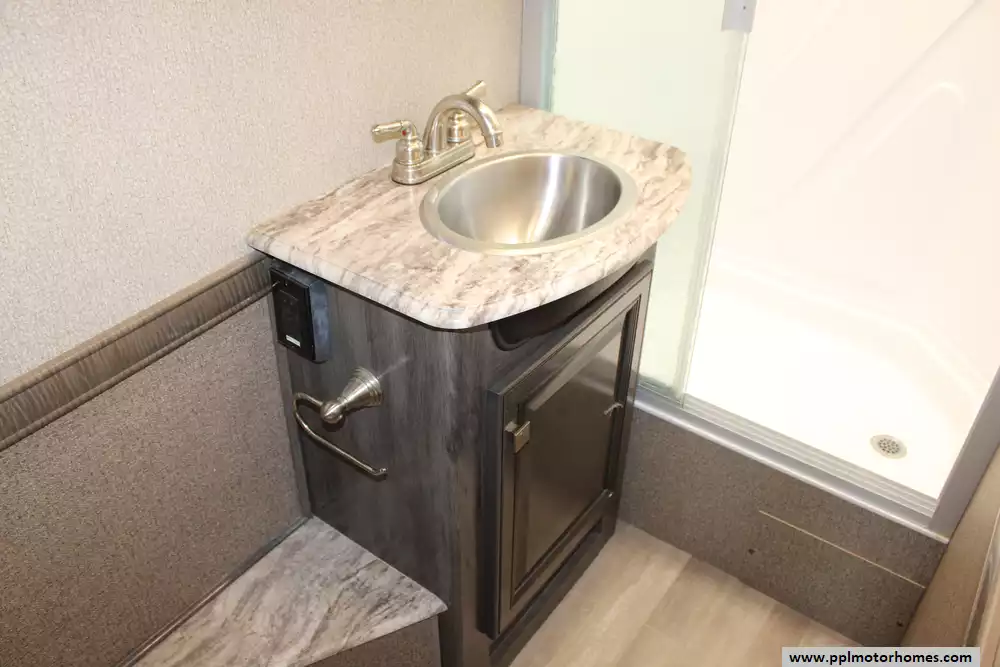 (Floor plan is NOT drawn to scale. Length of vehicle is approximate. Buyer is responsible for verifying actual length. PPL Motor Homes compiled this list of features, specifications, equipment and options as a guide. No representation or warranties, either express or implied, are made as to the accuracy of the information herein. Please verify for yourself all items listed before purchase.)