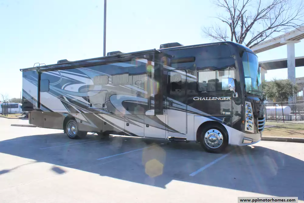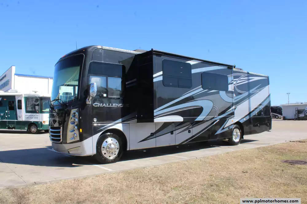 This 2020 Thor Challenger 35MQ is built for comfortable long-distance travel and full-time RV living. Features Include...V8 Ford Engine On a Ford Chassis, 2 Slide-outs, Onan Gas Generator, 1 Non-Ducted And 2 Ducted Air Conditioner, Levelers, Double Door Insignia Refrigerator, Automatic Main Awning And Window/Slide/Door Awnings, Backup Camera, GPS System, Heated Tanks, Outside Entertainment System, 4 TVs, Satellite Radio, Outside Shower, Microwave, and 3 Burner Range.