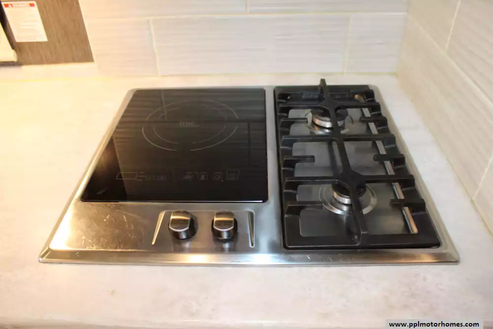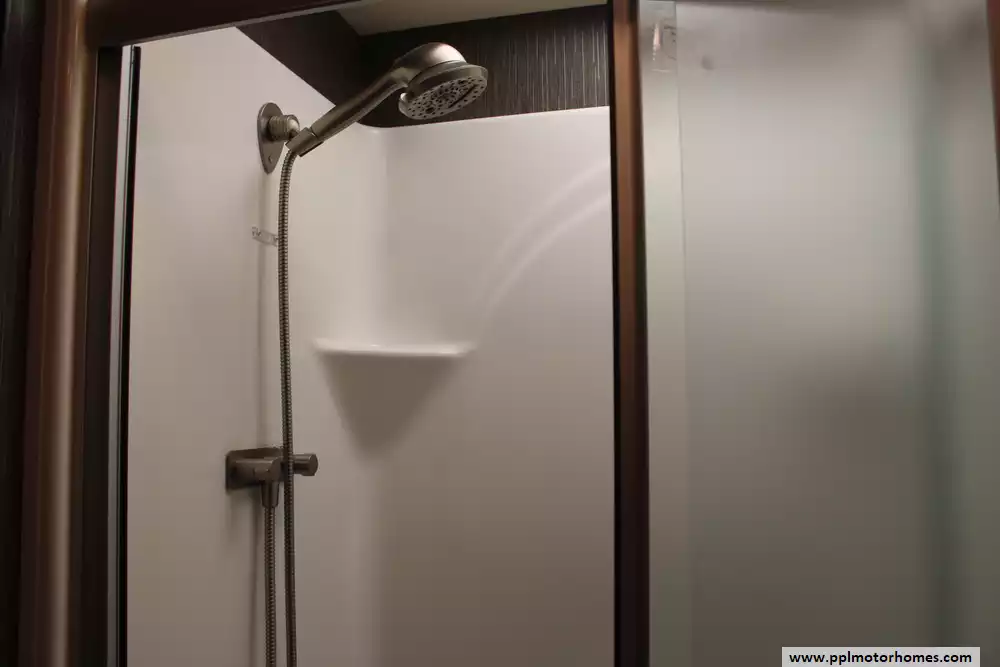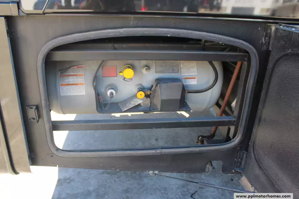 Specs: Length: 37.2ft., Width: 8.42 ft., Height: 12.11 ft., Interior Height: 7 ft., Fuel Capacity: 80 gal., Total Fresh Water Tank Capacity: 100 gal., Total Gray Water Tank Capacity: 40 gal., Total Black Water Tank Capacity: 40 gal., Total Propane Tank Capacity: 105 lbs.