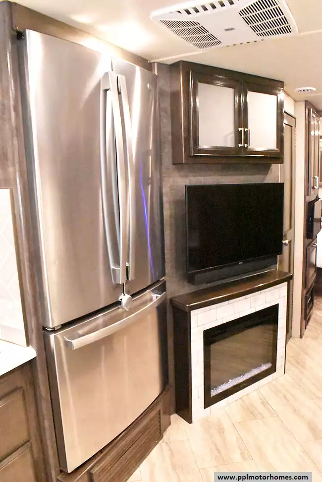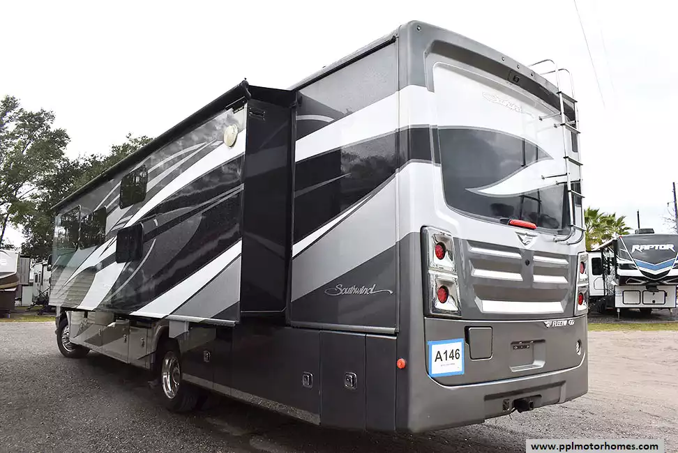 This 2021 Southwind by Fleetwood 37F has a V8 Triton Ford Engine On a Ford Chassis, 2 Slide-outs, Onan Gas Generator, 2 Ducted Air Conditioners, Levelers, Double Door Residential Ge Refrigerator, In-Fridge Ice Maker, Automatic Main Awning, Washer/Dryer, Backup Camera, Outside Entertainment System, 5 TVs, Outside Shower, Fireplace, Convection Microwave, 3 Burner Range, Oven