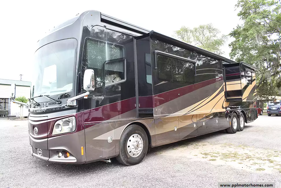 Experience the pinnacle of luxury travel with the 2015 Monaco Dynasty 45P, a flagship motorhome renowned for its commanding presence and masterfully crafted interior. Built upon the specialized Roadmaster B-Series chassis from Freightliner, this coach offers a legendary ride quality enhanced by independent front suspension and a heavy-duty air bag system. Under the hood, the massive 600hp Cummins engine delivers the effortless power and torque required for crossing mountain passes or towing with ease, while the integrated exhaust brake ensures confident control on every descent. Whether you are navigating with the onboard GPS or relaxing under the automatic main awning, the Dynasty 45P provides a seamless blend of high-performance engineering and sophisticated elegance.