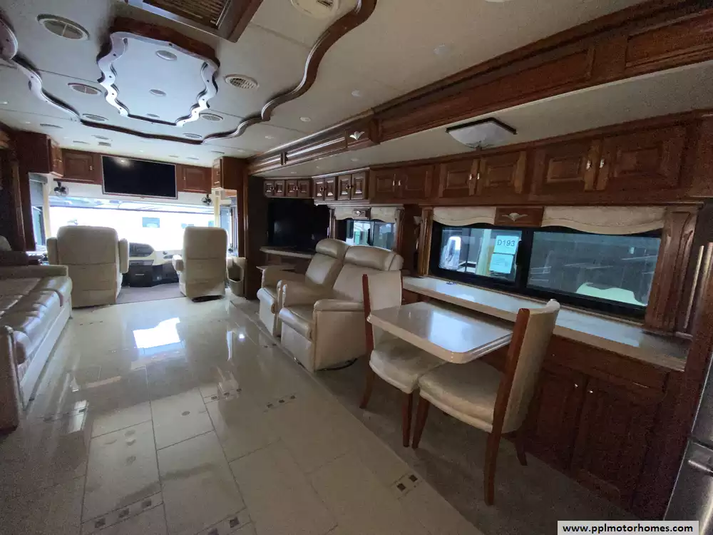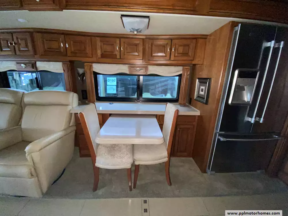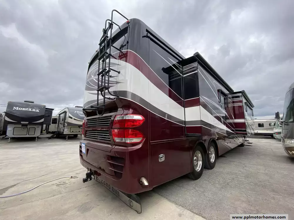 Inside, the four expansive slide-outs reveal a residential sanctuary perfect for extended stays or full-time living. The gourmet kitchen is a chef's dream, featuring a single-door residential Maytag refrigerator with an in-fridge ice maker, a convection microwave, a two-burner range, a dishwasher, and a central vacuum system for easy cleanup. Modern conveniences abound with a stackable washer/dryer unit, three ducted air conditioners for optimal climate control, and a satellite dish to keep you connected to your favorite programming. Entertainment options are endless with two interior TVs and DVD players, complemented by an outside entertainment system for relaxing evenings under the stars. Complete with an outside shower for added utility, this Allegro represents the gold standard of the RV industry, offering a sophisticated blend of domestic comfort and high-performance capability.