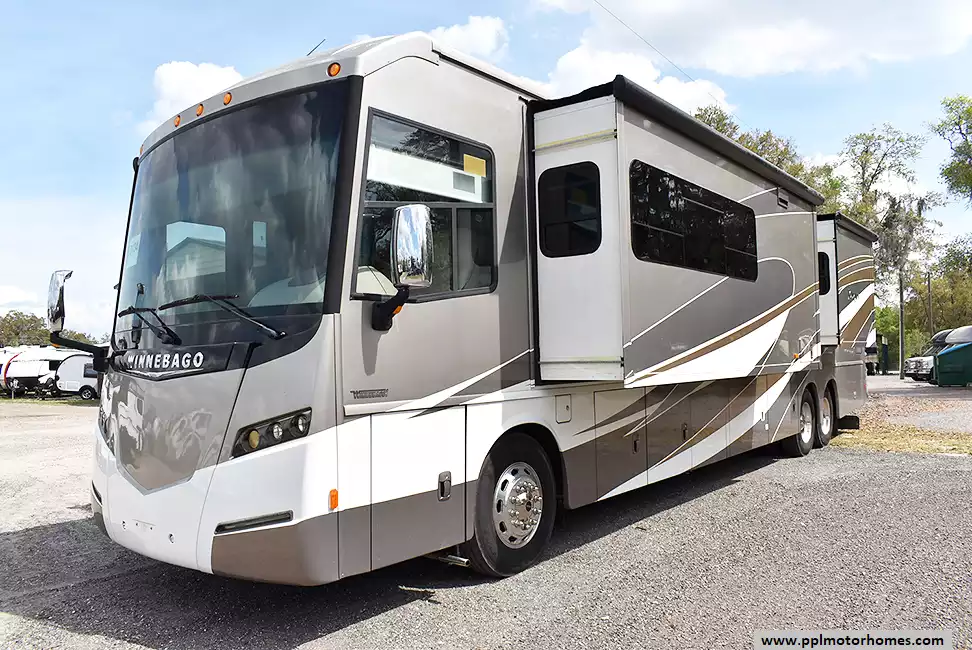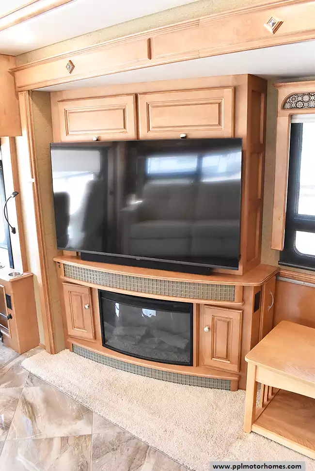 Inside, the three expansive slide-outs reveal a residential-style sanctuary designed for long-term comfort and sophisticated entertaining. The kitchen is a chef's dream, featuring a residential Whirlpool refrigerator with an in-fridge ice maker, a three-burner range, and a microwave, all adjacent to a spacious living area anchored by a warm electric fireplace. Total climate control is guaranteed by three ducted air conditioners, while the onboard washer and dryer add the convenience of home to your travels. Entertainment options are extensive, including three interior TVs, a satellite dish, and a dedicated outside entertainment system for relaxing evenings under the stars. With a quiet Onan diesel generator providing reliable power wherever you roam, this Winnebago Journey 42E perfectly captures the brand's reputation for innovative floor plans and uncompromising build quality.