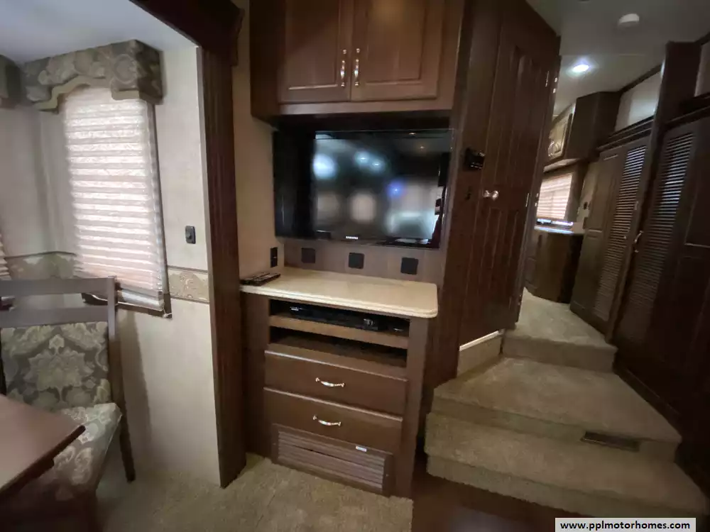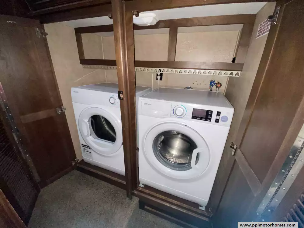 Step inside to find a climate-controlled sanctuary maintained by two ducted air conditioners, ensuring total comfort in any weather. The gourmet-style kitchen is fully equipped for the road-side chef with a three-burner range, oven, convection microwave, and a large double-door gas/110v Norcold refrigerator. This unit is truly prepared for long-term travel, boasting a built-in washer and dryer along with an integrated entertainment system featuring two TVs and a DVD player. Whether you are seeking a weekend escape or a full-time residence, the Carriage Cameo 31KSLS offers a perfect blend of luxury, durability, and residential convenience that is increasingly rare in the pre-owned market.