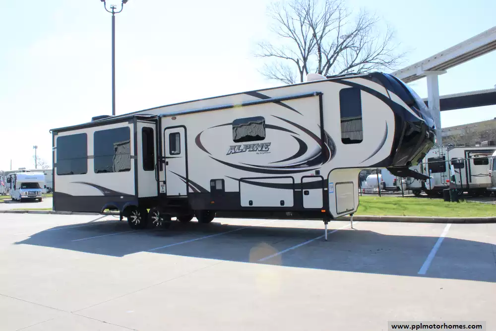 This 2015 Alpine 3730FB is a luxurious fifth-wheel RV designed for discerning travelers seeking comfort and high-end amenities.Features Include...3 Slide-outs, 2 Ducted Air Conditioners, 4 Door Gas/110v Dometic Refrigerator, Automatic Main Awning, 2 TVs, DVD Player, Outside Shower,2 Fireplaces, Convection Microwave, 3 Burner Range,and Oven.It combines elegant design, spacious interiors,and high-quality amenities,making it an excellent choice for those seeking a premium fifth-wheel experience.