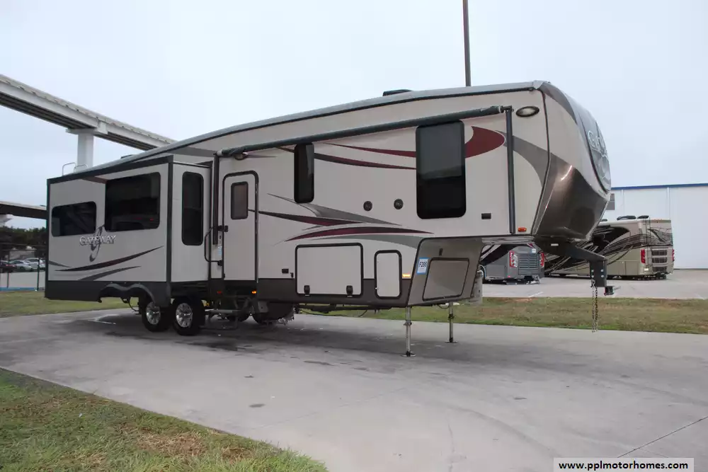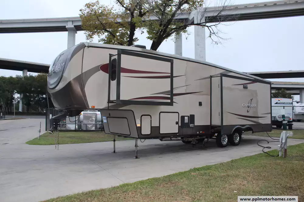This 2016 Gateway 3400SE works well for extended stays, weekend getaways, or even longer-term travel. Comforts Include...3 Slide-outs, 2 Ducted Air Conditioners, Double Door Residential Frigidaire Refrigerator, Automatic Main Awning, Washer/Dryer, Outside Speakers, TV, DVD Player, Fireplace, Microwave, 3 Burner Range, and Oven.
