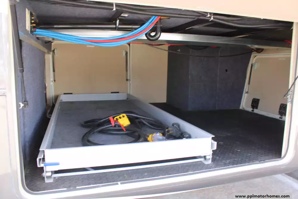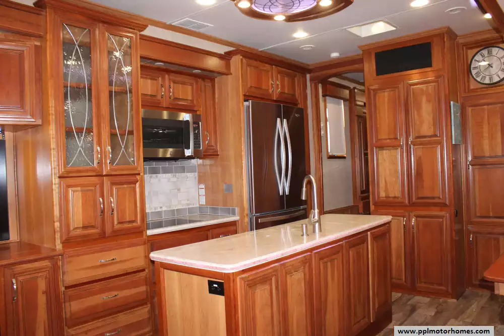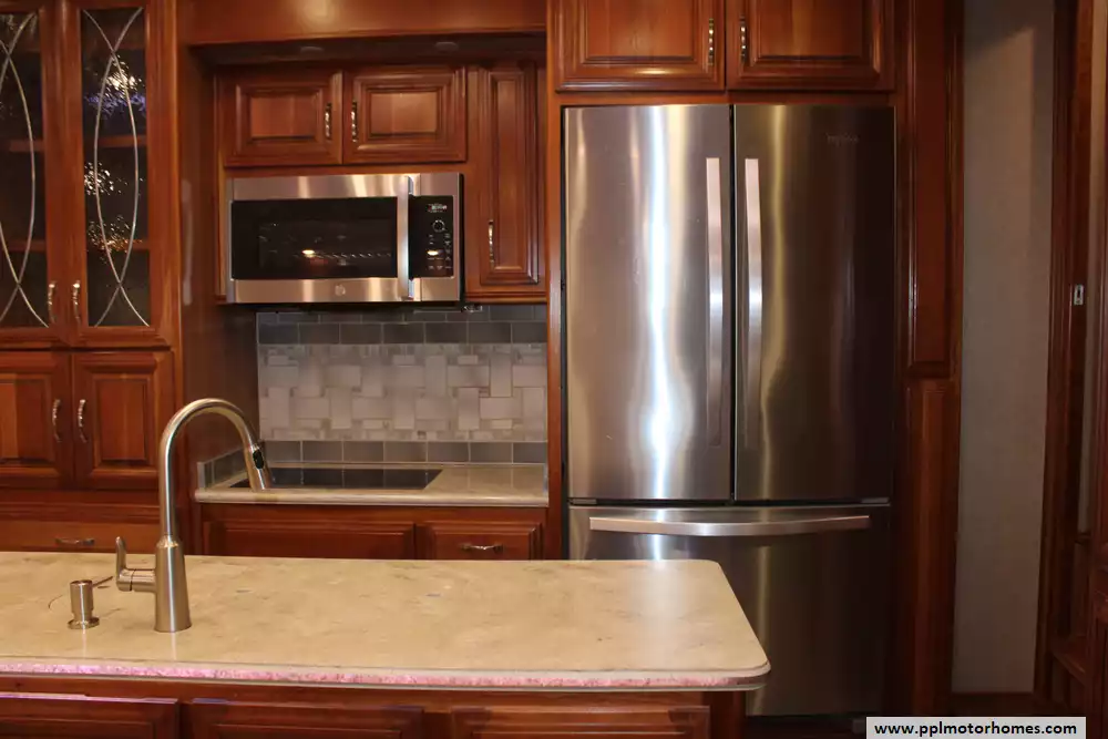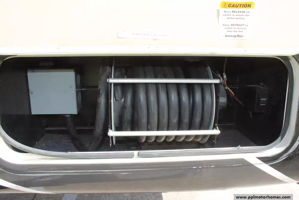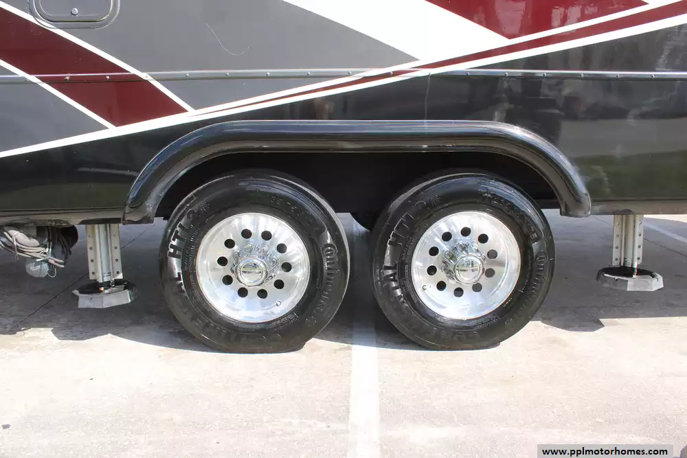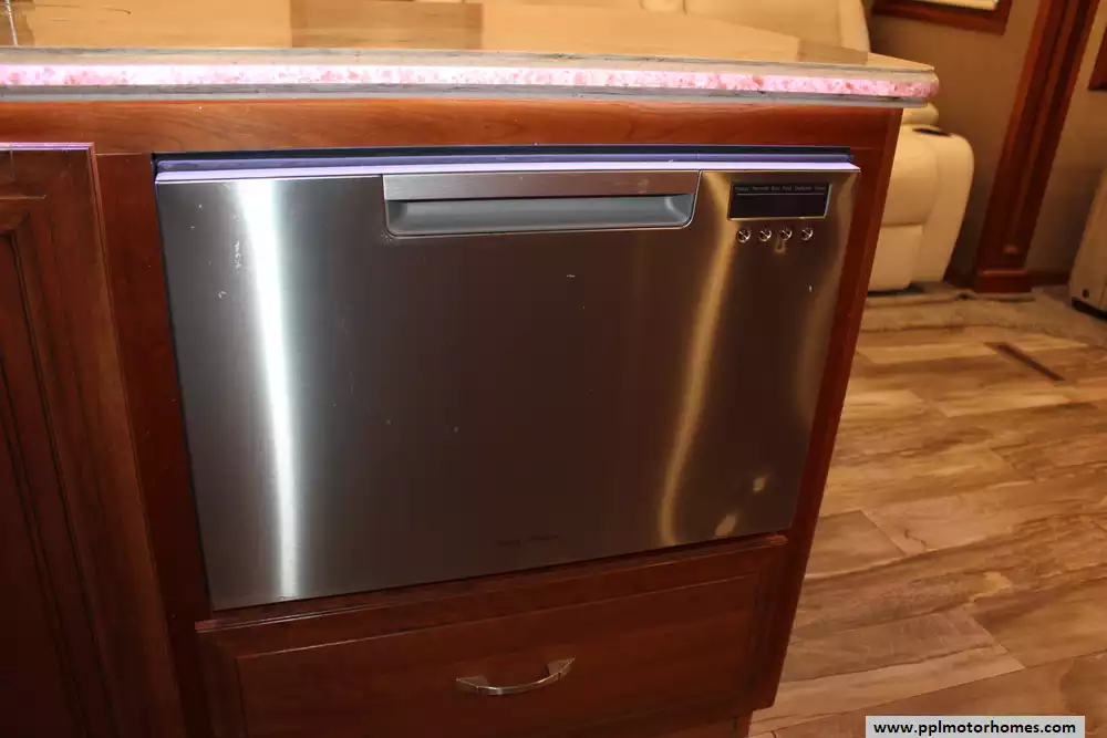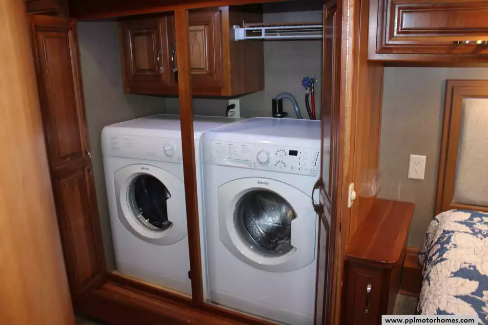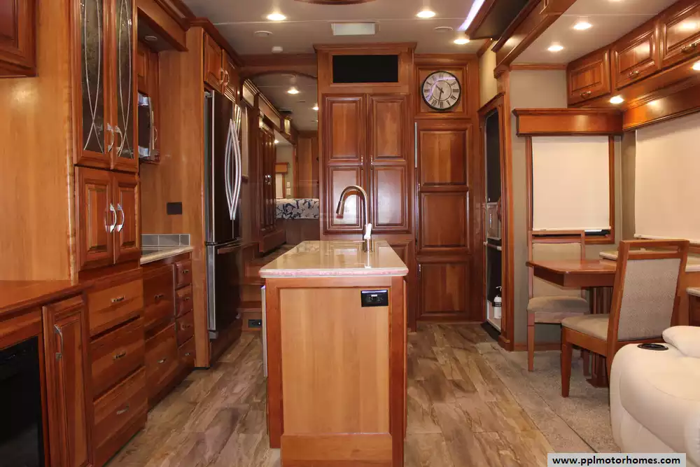 Inside, you will find a gourmet environment designed for those who refuse to compromise on residential conveniences. The kitchen is a chef's dream, featuring a 110v residential Whirlpool refrigerator with an in-fridge ice maker, a dishwasher, a recently replaced Convection Microwave, and an induction cooktop. This suite is fully prepared for long-term stays with a built-in washer/dryer, a central vacuum system, and two ducted air conditioners for precise climate control. Whether you are relaxing with the two upgraded smart TVs and DVD player,added a Sony Sorround Sound System or utilizing the convenient outside shower after a day of exploration, this Mobile Suite delivers an unparalleled blend of sophistication and utility. Recently replaced Contiental Plus 18ply Tires.