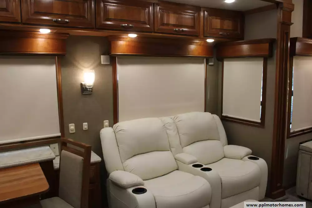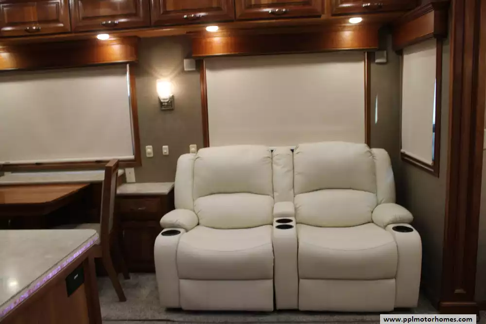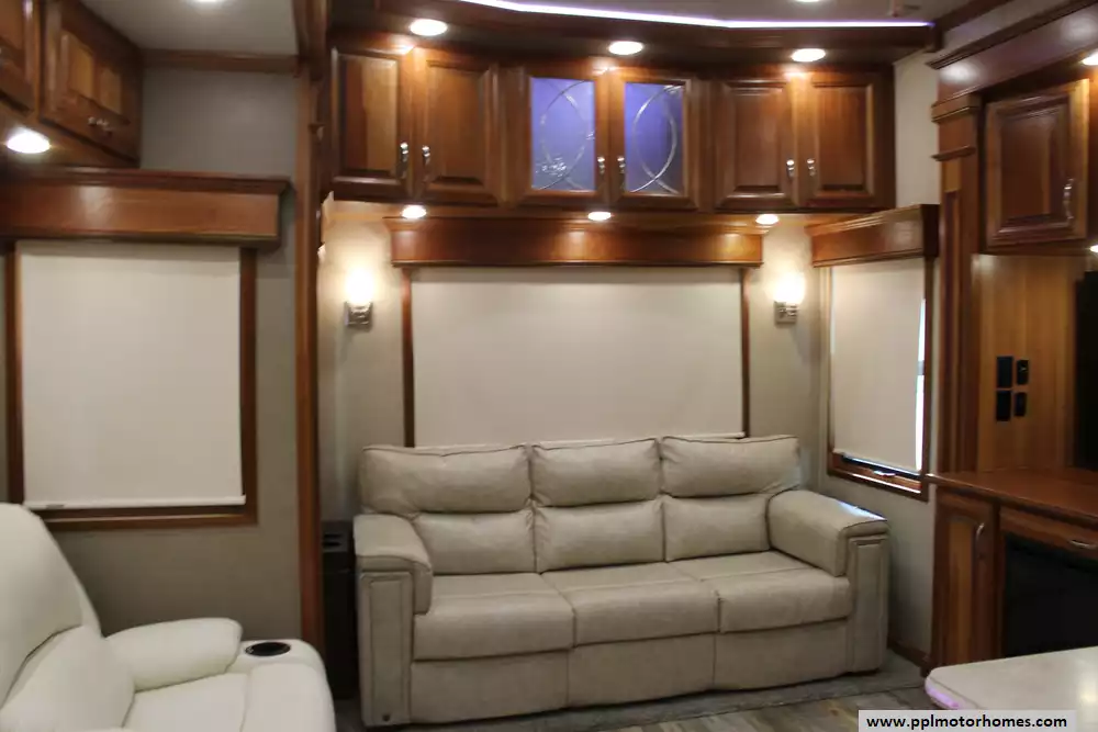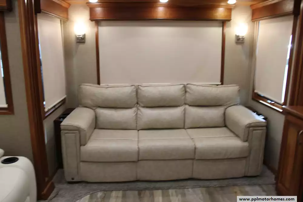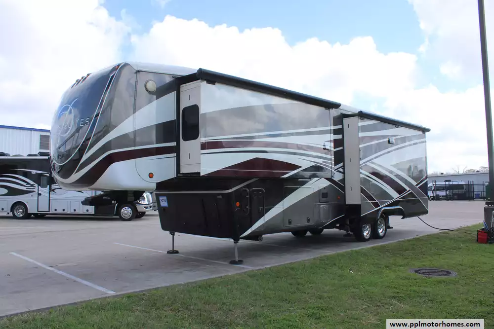 Experience the gold standard of luxury living with this 2018 Mobile Suite 38RSB3. Widely regarded as a premier choice for full-time enthusiasts, this 39-foot fifth wheel is engineered for durability and comfort with high-quality fiberglass construction and a robust rubber roof. The industry-leading foundation is paired with high-performance hydraulic landing gear for rock-solid stability, while four spacious slide-outs open up an expansive, residential-style floor plan. Exterior comfort is just as prioritized with an automatic main awning and additional window and slide awnings to keep your living space cool and shaded in any climate.
