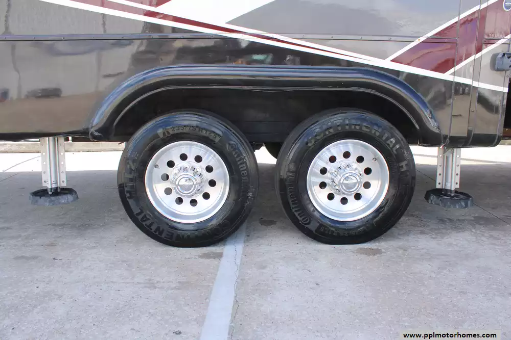 Specs: Length: 39 ft., Width: 8.5 ft., Height: 13.2 ft., Total Fresh Water Tank Capacity: 100 gal., Total Gray Water Tank Capacity: 75 gal., Total Black Water Tank Capacity: 50 gal., Total Propane Tank Capacity: 80 lbs.