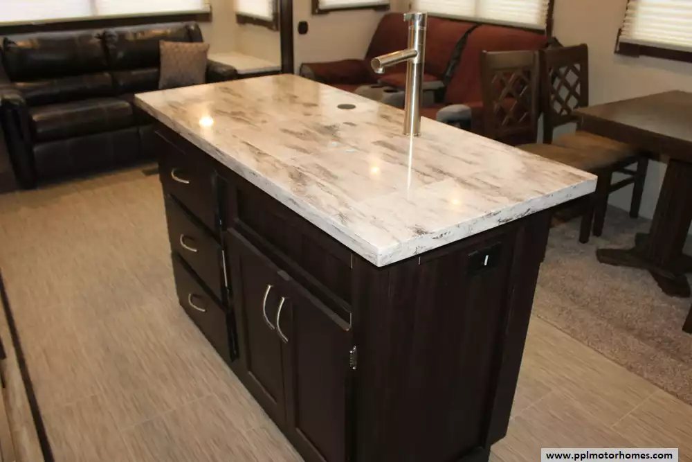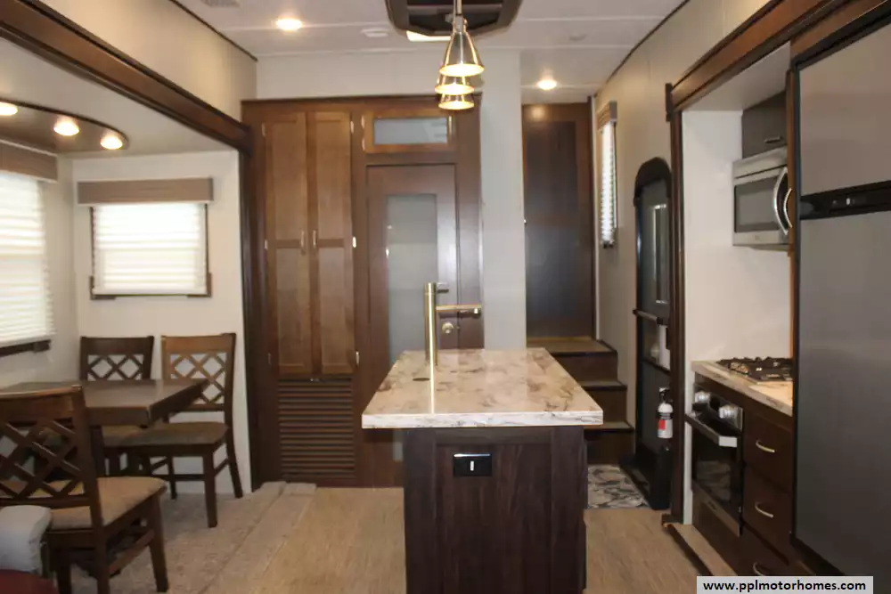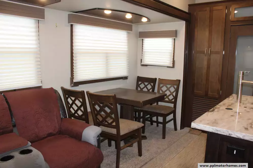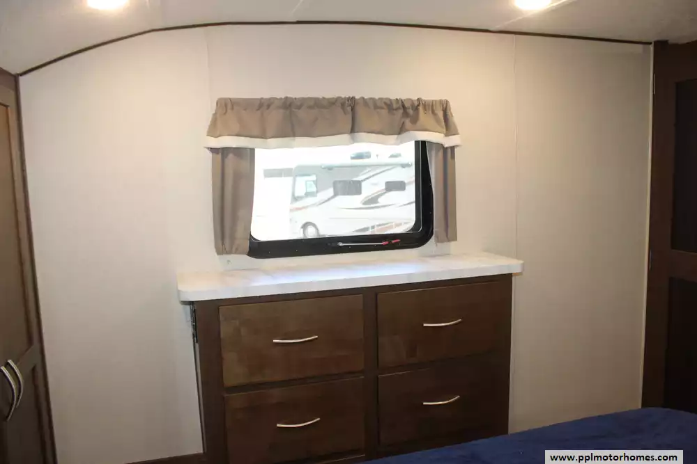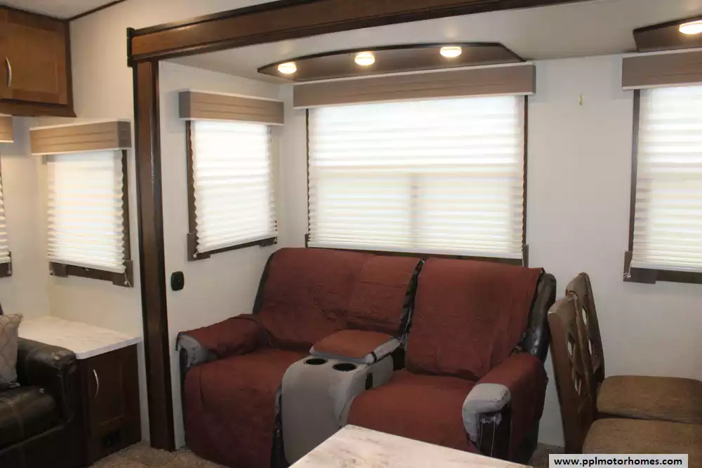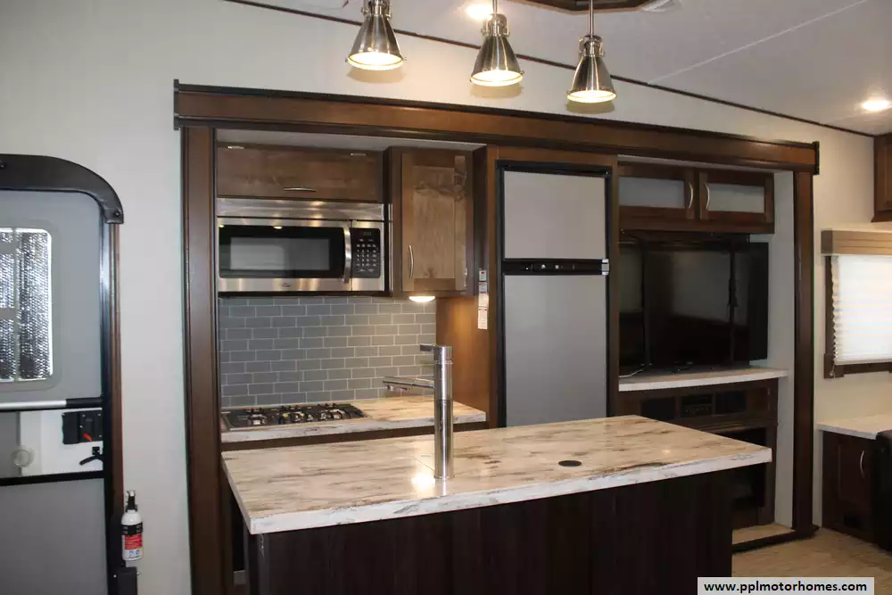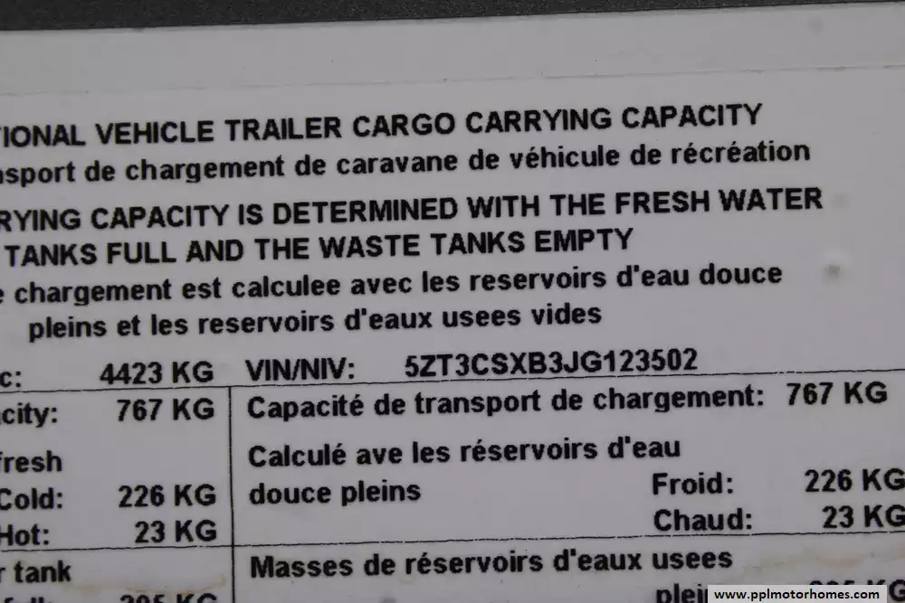 Length: 33 ft 11 in Dry Weight (UVW): 9,964 lbs Hitch Weight: 1,953 lbs Cargo Carrying Capacity (CCC): 2,389 lbs Slides: 3 Sleeps: 6 Fresh Water Capacity: 60 Gallons Gray Water Capacity: 70 Gallons Black Water Capacity: 35 Gallons
