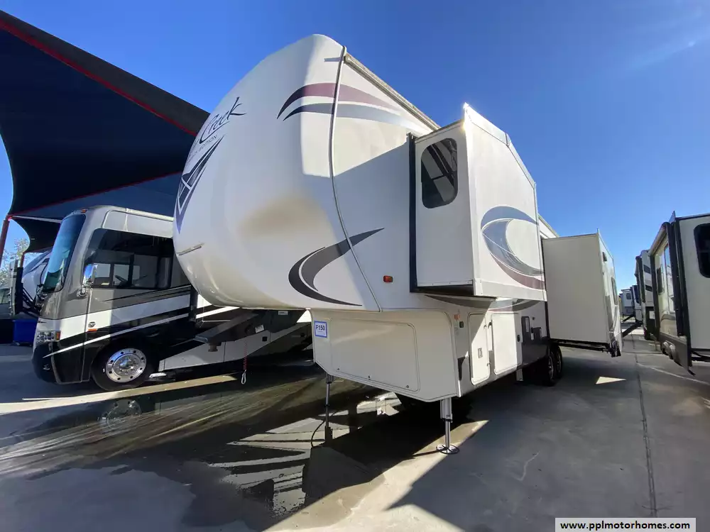 This 2018 Silverback 29RE has an Electric Landing Gear, 3 Slide-outs, 2 Ducted Air Conditioners, Double Door 110v Whirlpool Refrigerator, In-Fridge Ice Maker, Automatic Main Awning, Washer/Dryer Connections, Outside Speakers, 2 TVs, DVD Player, Outside Shower, Fireplace, Central Vacuum, Microwave, 3 Burner Range, Oven, Surround Sound in Living Area, Lightly Used Only A Few Times A Month.