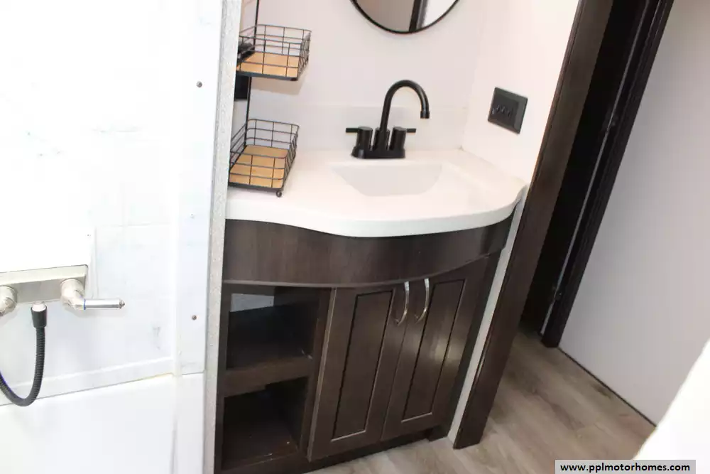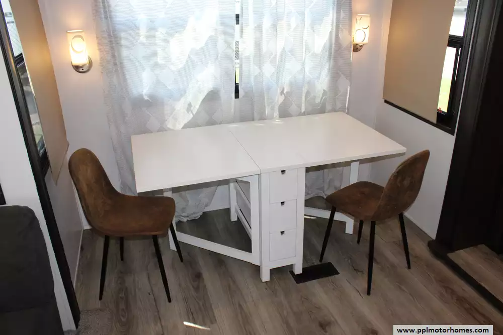 Specs: Length: 40.67 ft., Width: 8 ft., Height: 13.42 ft., Payload Capacity: 3,456 lbs., Total Fresh Water Tank Capacity: 69 gal., Total Gray Water Tank Capacity: 80 gal., Total Black Water Tank Capacity: 40 gal., Total Number of Propane Tanks: 2.