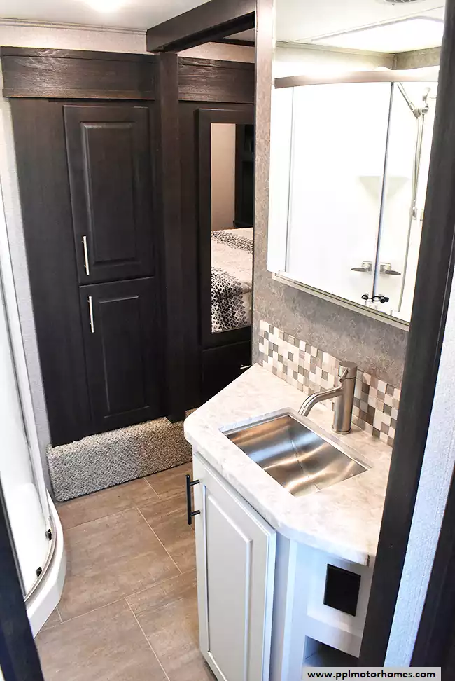 (Floor plan is NOT drawn to scale. Length of vehicle is approximate. Buyer is responsible for verifying actual length. PPL Motor Homes compiled this list of features, specifications, equipment and options as a guide. No representation or warranties, either express or implied, are made as to the accuracy of the information herein. Please verify for yourself all items listed before purchase.)