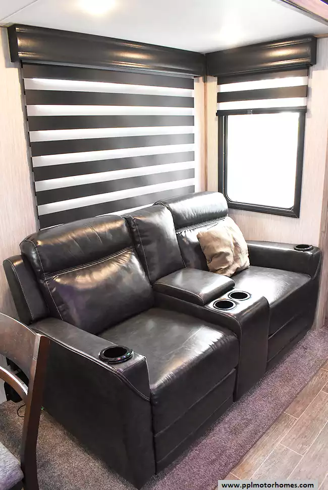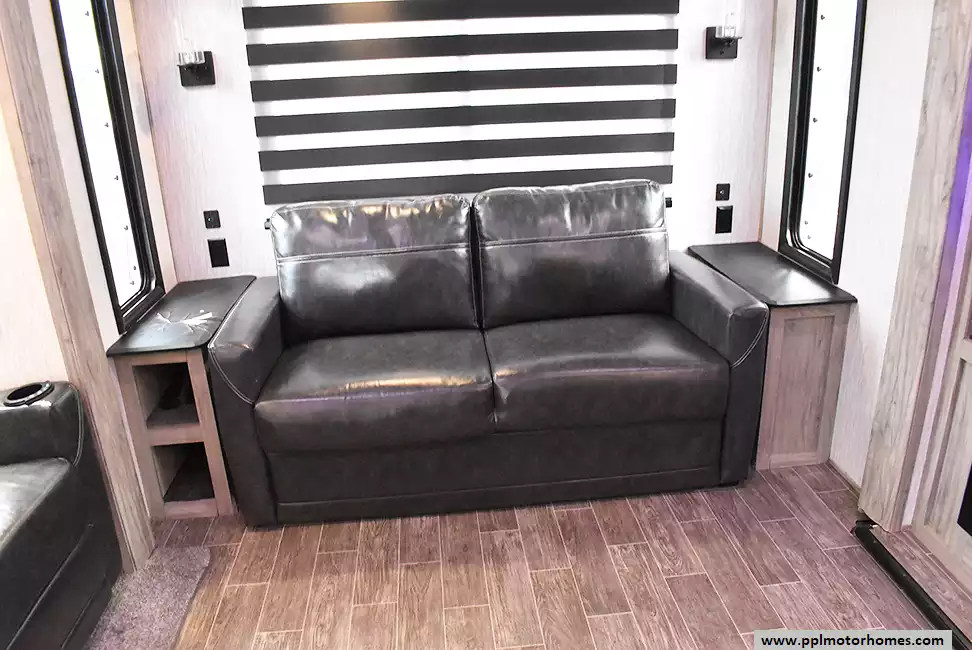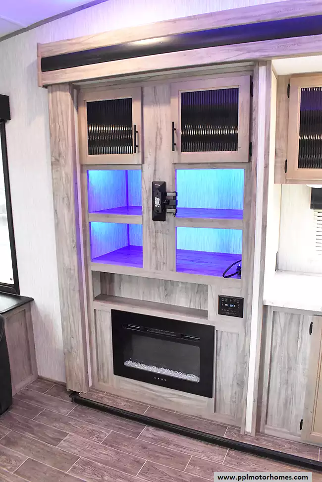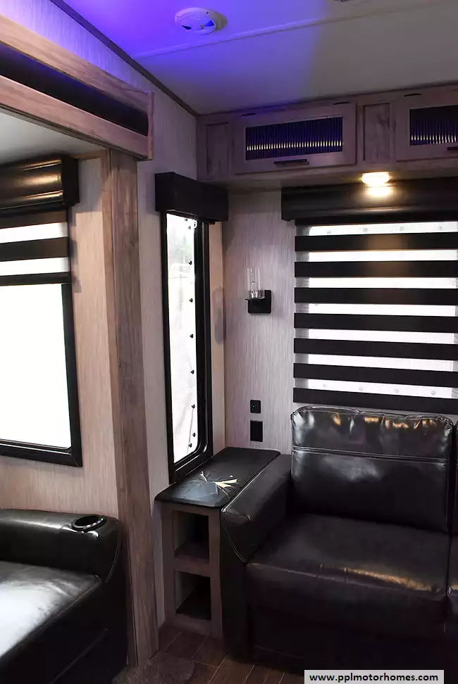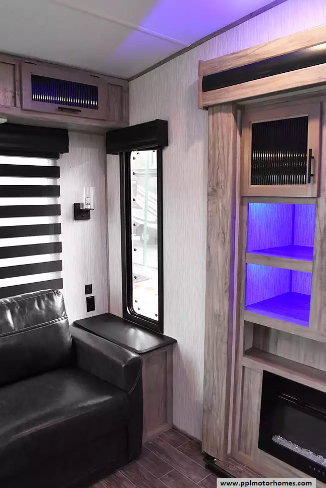 !Hit the road in style with this well-equipped fifth wheel featuring a spacious rear living layout, modern kitchen, theatre seating, electric fireplace, and panoramic windows. Outfitted for convenience and safety, it includes:Newer Goodyear Endurance tires