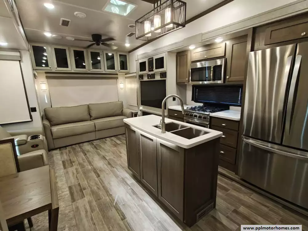 This 2022 Columbus 299RL is a feature-rich, luxury fifth-wheel designed for comfort and functionality. Perfect for a couple or small family, sleeps up to 4 people. Amenities Include....Hydraulic Landing Gear with Auto Leveling, Side and Rear Cameras, Tire Pressure Monitoring, 3 Slide-outs with Slide Toppers, MaxxAir Vents Onan Propane Generator, 12V Tank Heating Pads, 2 Ducted Air Conditioners, 4 Door Residential Lg Refrigerator, In-Fridge Ice Maker, Automatic Main Awning, Washer/Dryer Connections, Outside Speakers, 2 TVs, JBL Sound Bar and Speakers, Ceiling Fan in Living Area, Pantry, Spacious Master Closet with Built In Shelves, Upgraded Mattress, Reading Lights Above Bed, Outside Shower, Central Vacuum, Microwave, 4 Burner Range and Full Size Oven.