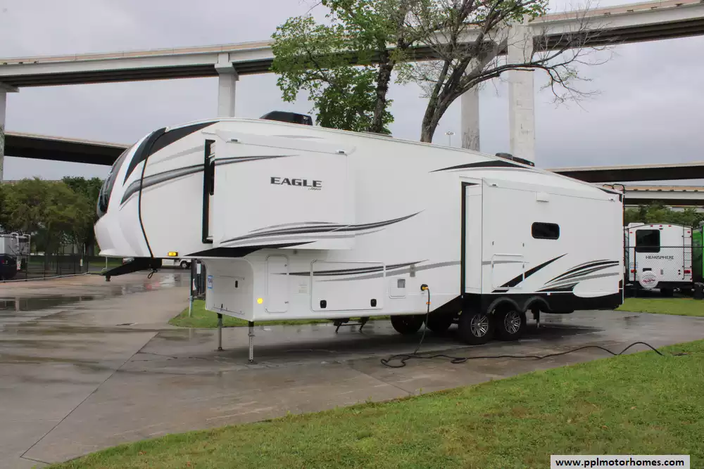 This 2022 Jayco Eagle 321RSTS is a high-end fifth-wheel RV designed for comfort, style,and long-term livability.This model offers a spacious and well-appointed interior,making it an excellent choice for couples or full-time RVers seeking a residential feel on the road.Amenities Include...3 Slide-outs,2 Ducted Air Conditioners,Double Door Side by Side Residential Whirlpool Refrigerator,In-Fridge Ice Maker,Automatic Main Awning,Outside Speakers,2 TVs,Mor Ryde Steps,Theatre Seating,Large Shower,Outside Shower,Fireplace, Microwave,3 Burner Range,and Oven.It combines luxury,durability,and smart technology,making it a fantastic choice for those looking to enjoy extended travel or full-time RV living.