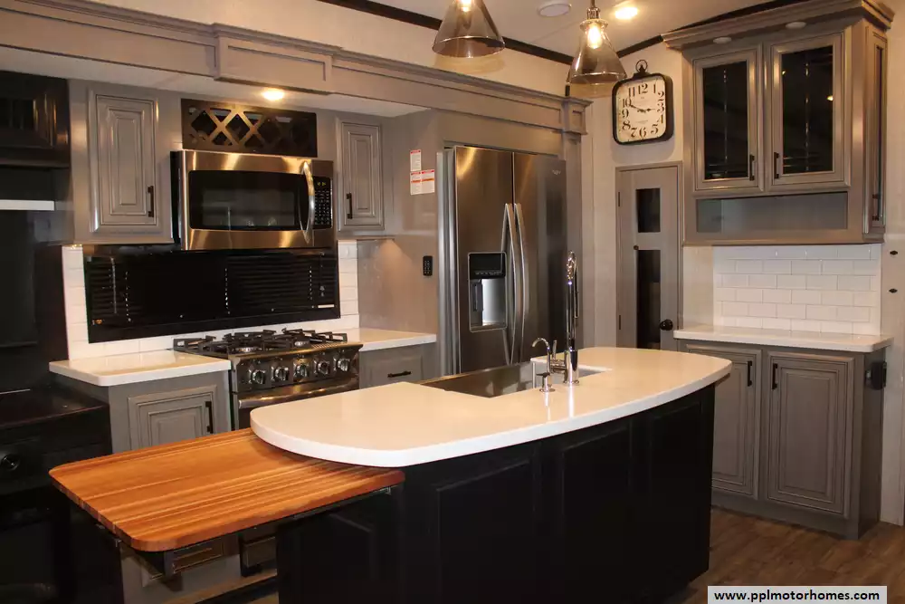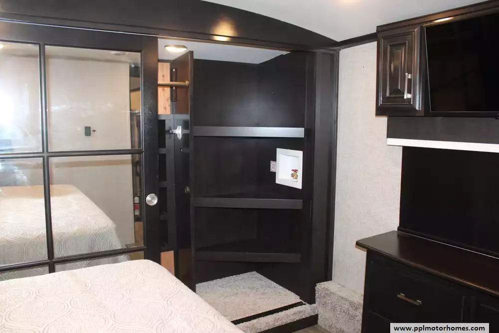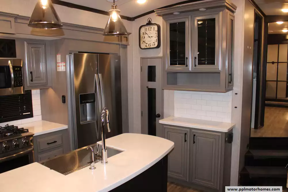 The chef-inspired kitchen is designed for full-time living, featuring a side-by-side 110v residential Samsung refrigerator with an in-fridge ice maker, a convection microwave, a three-burner range, and a full oven. Entertainment options abound with three total TVs and a dedicated outside entertainment system, perfect for relaxing under the automatic main and window awnings. This unit is fully equipped for long-term adventures with integrated washer/dryer connections, an outside shower for quick cleanups, and high-end finishes throughout. Whether you are hosting friends or enjoying a quiet getaway, this Pinnacle 32RLTS provides a sophisticated, home-like experience that truly lives up to its name.