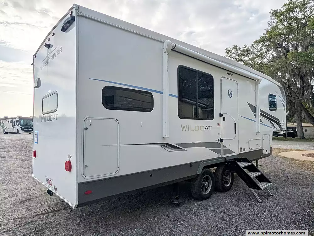 Experience the perfect balance of luxury and towability with the 2025 Wildcat by Forest River 23RK. Renowned for its industry-leading vacuum-bonded fiberglass construction and its reputation as a premium yet manageable fifth wheel, this 29-foot model is specifically designed for travelers who want high-end amenities without the need for a heavy-duty tow vehicle. The exterior is built for durability with a robust rubber roof and maximum convenience, featuring electric landing gear for easy setup and an automatic main awning that creates an instant outdoor patio. Whether you are using the outside shower after a day of exploring or enjoying the climate-controlled interior powered by two ducted air conditioners, this Wildcat is engineered for comfort in any environment.