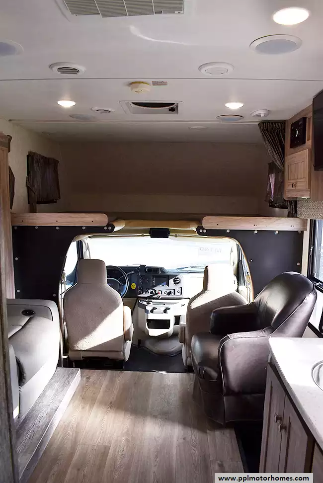 This 2018 Sun Seeker 2650S has a V10 6.8l Ford Engine On a Ford 450 Chassis, 1 Slide-out, Onan Propane Generator, 1 Ducted Air Conditioner, Levelers, Double Door Gas/110v Dometic Refrigerator, Automatic Main Awning And Slide/Door Awnings, Backup Camera, GPS System, Solar Panel, Satellite Receiver, TV, DVD Player, Satellite Radio, Microwave, 3 Burner Range, Oven