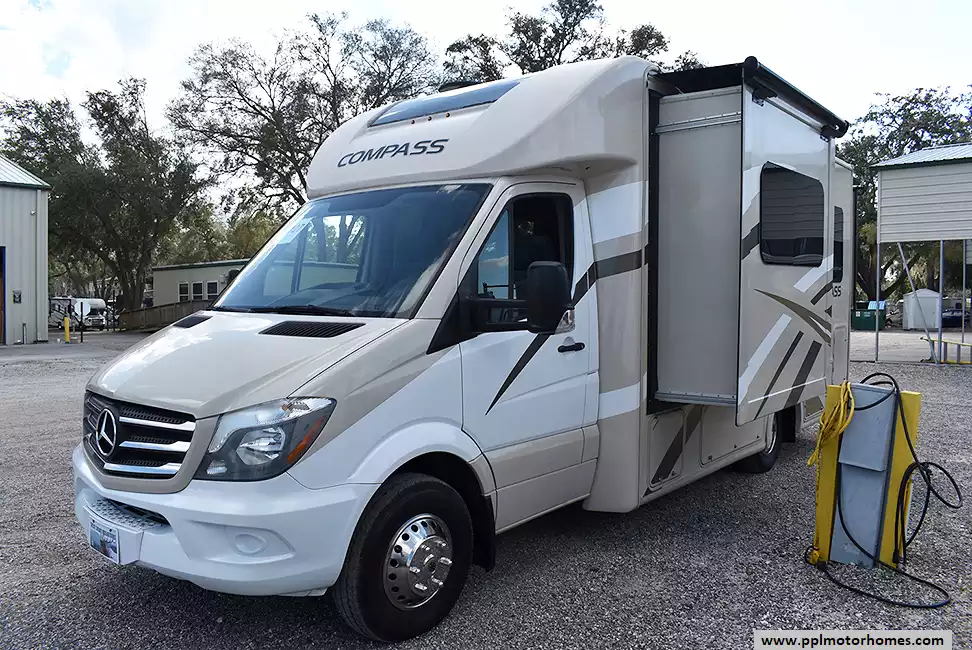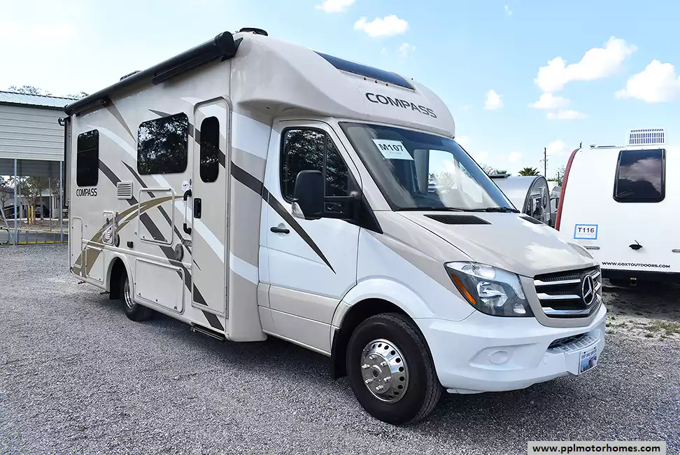 Experience the perfect blend of agility and luxury with this 2018 Compass 24TX, a premier Recreational Utility Vehicle (RUV) designed for travelers who crave the maneuverability of a smaller van without sacrificing the comforts of a full-sized coach. Built on the legendary Mercedes-Benz Sprinter chassis and powered by a fuel-efficient 3.0L V6 diesel engine, this 24-foot motorhome is renowned for its smooth handling and ability to navigate tight spaces and standard parking lots with ease. The innovative dual slide-out design transforms the fiberglass body into a remarkably spacious living area, offering a high-end, modern interior that makes every destination feel like a boutique hotel stay.