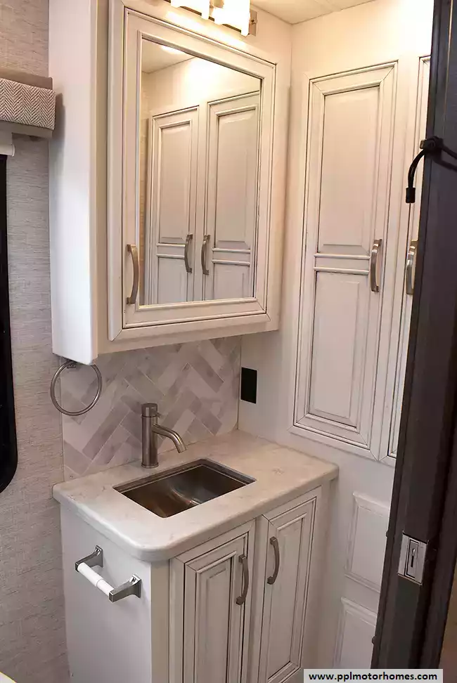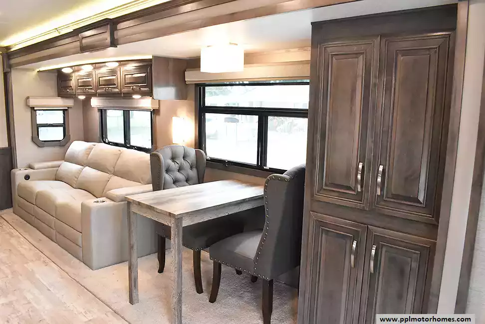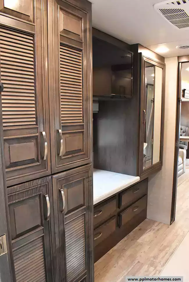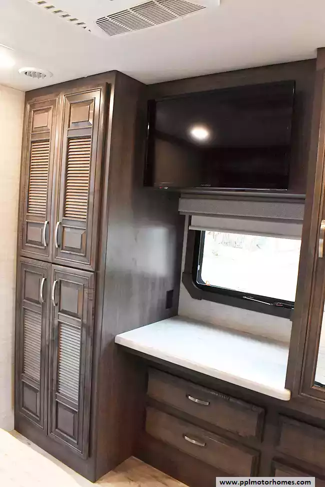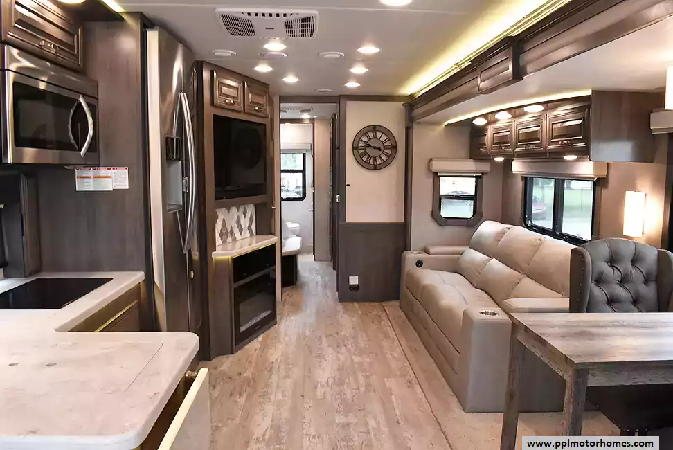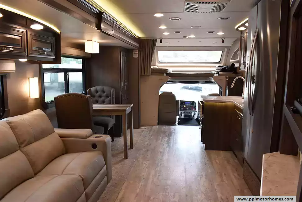 (Floor plan is NOT drawn to scale. Length of vehicle is approximate. Buyer is responsible for verifying actual length. PPL Motor Homes compiled this list of features, specifications, equipment and options as a guide. No representation or warranties, either express or implied, are made as to the accuracy of the information herein. Please verify for yourself all items listed before purchase.)