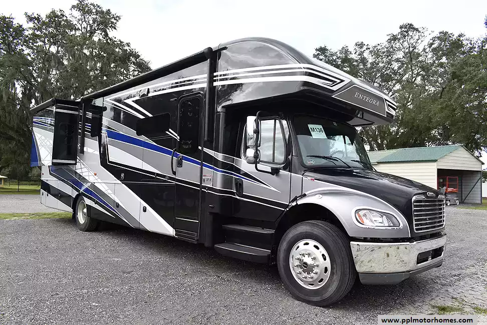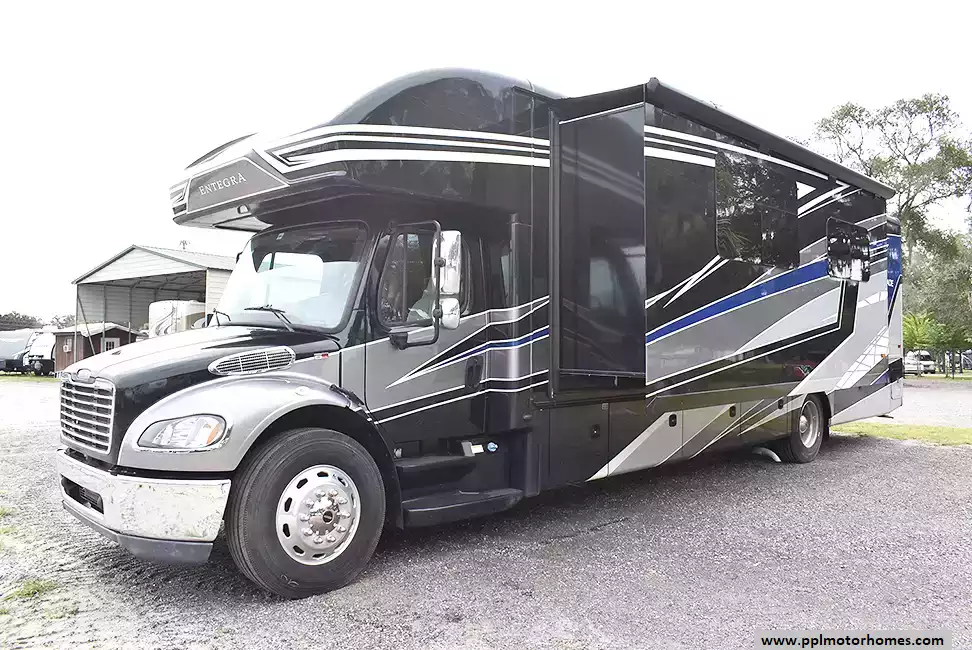 Experience luxury and power with this 2023 Entegra Accolade 37K, a Super C motorhome that blends residential comfort with heavy-duty performance. Built on a Freightliner chassis with rear air suspension and E-Z Drive Premier handling, it delivers a smooth ride and confident control.Inside, you'll find a spacious bath-and-a-half layout, perfect for traveling families or entertaining guests. The modern kitchen features an induction cooktop, solid-surface countertops, and premium cabinetry. Enjoy residential conveniences like a washer and dryer, king bed suite, and ample storage throughout.With low mileage, top-tier finishes, and the comfort of air suspension, this coach is ready for the road. Whether you're planning extended adventures or weekend getaways, the Accolade 37K offers everything you need for first-class travel.