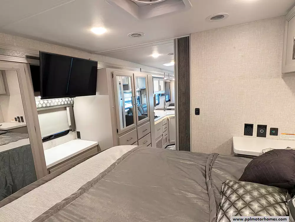 (Floor plan is NOT drawn to scale. Length of vehicle is approximate. Buyer is responsible for verifying actual length. PPL Motor Homes compiled this list of features, specifications, equipment and options as a guide. No representation or warranties, either express or implied, are made as to the accuracy of the information herein. Please verify for yourself all items listed before purchase.)