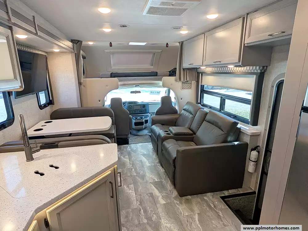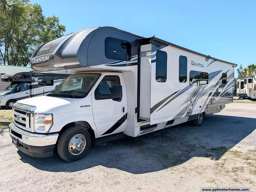 Experience the perfect blend of power and residential comfort with this 2023 Quantum WS31. Built on the rugged Ford 450 chassis and powered by the dependable Triton V8 engine, this 32-foot Class C motorhome is renowned for its effortless handling and smooth performance on steep climbs. The standout feature of this model is its impressive full-wall slide-out, which dramatically expands the interior to create an open, airy living space rarely found in a Class C. Constructed with a high-quality fiberglass body and a durable rubber roof, this coach is designed for longevity and style, making it a top choice for families who refuse to compromise on space or reliability.