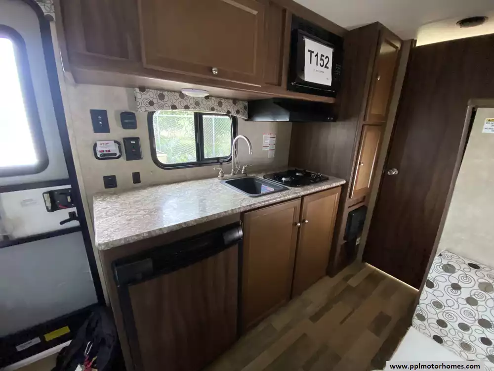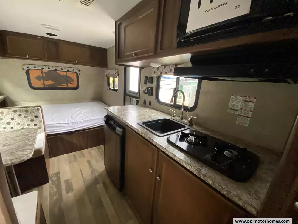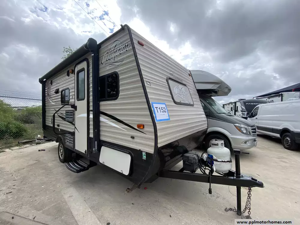 This well-equipped unit comes ready for adventure with all the essential comforts of home. Stay cool during summer trips with the efficient non-ducted air conditioner, and enjoy easy meal prep using the two-burner range, microwave, and single-door Dometic gas/110v refrigerator. The exterior is just as functional, featuring an automatic main awning for instant shade, outside speakers for your favorite soundtracks, and a convenient outside shower to rinse off after a day of exploring. Whether you are relaxing inside or enjoying the fresh air, the Clipper 17BH offers a reliable and comfortable foundation for your next great journey.