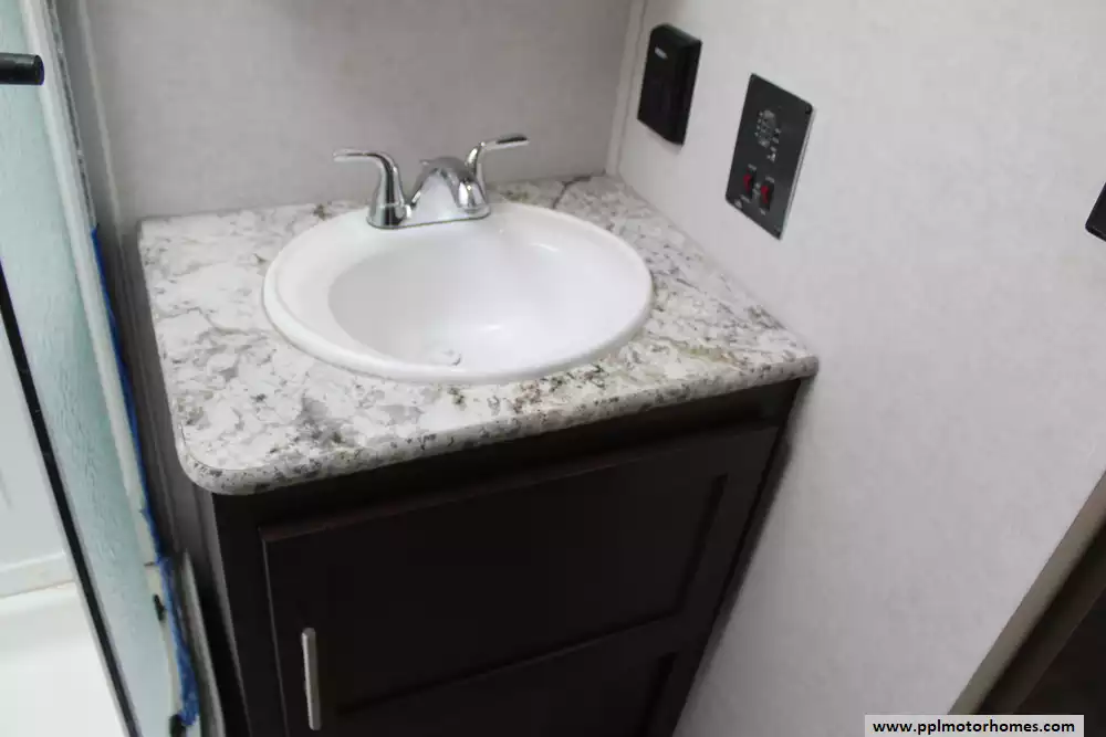 Specs: Length: 31.3 ft., Width: 8 ft., Height: 11.2 ft., Interior Height: 6.11 ft., Payload Capacity: 1,689 lbs., Total Fresh Water Tank Capacity: 46 gal., Total Grey Tank Capacity: 40 gal., Total Black Water Tank Capacity: 30 gal.