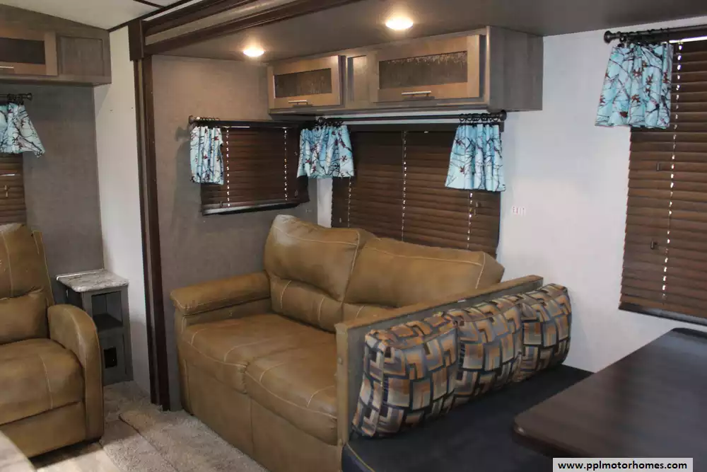 The 2018 Surveyor by Forest River 266RLDS is a standout in the travel trailer market, renowned for combining a lightweight, tow-friendly design with the robust durability of its signature aluminum cage construction. At 31 feet, this model is highly regarded for its spacious and airy interior, thanks in large part to the two slide-outs that open up the living area to create a true residential feel. Whether you are hosting guests or relaxing after a day of adventure, the model's characteristic barreled ceiling provides exceptional headroom that makes the entire coach feel expansive and inviting.