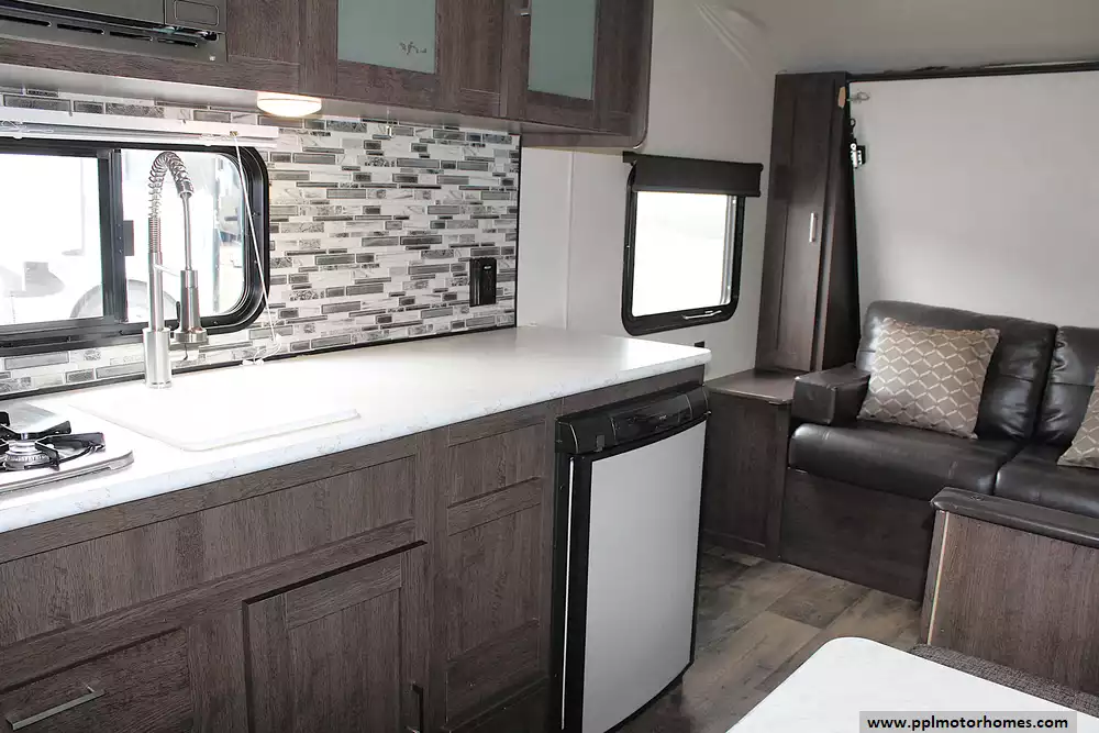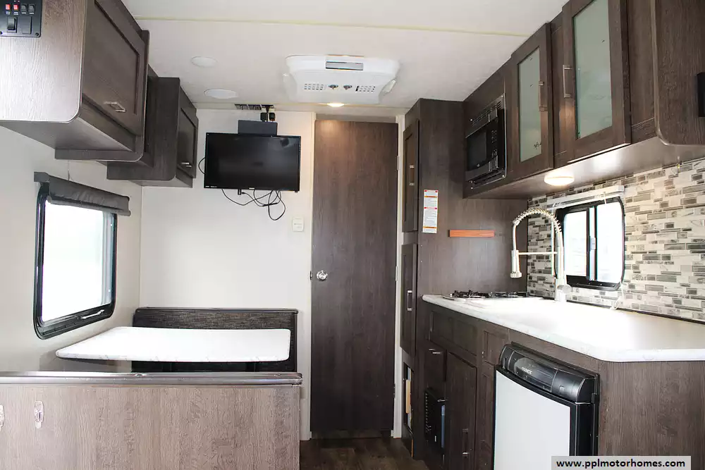 2018 Forest River Wildwood 187RB is a compact, easy-to-tow travel trailer that packs impressive functionality into a lightweight design, making it perfect for couples or small families ready to hit the road. The versatile Murphy bed setup allows you to enjoy a comfortable sofa seating area during the day and quickly convert it into a cozy sleeping space at night. Paired with a booth dinette that also converts into an additional bed, this unit comfortably sleeps up to 3--4 people, giving you flexibility whether you're traveling solo, as a couple, or with guests.
