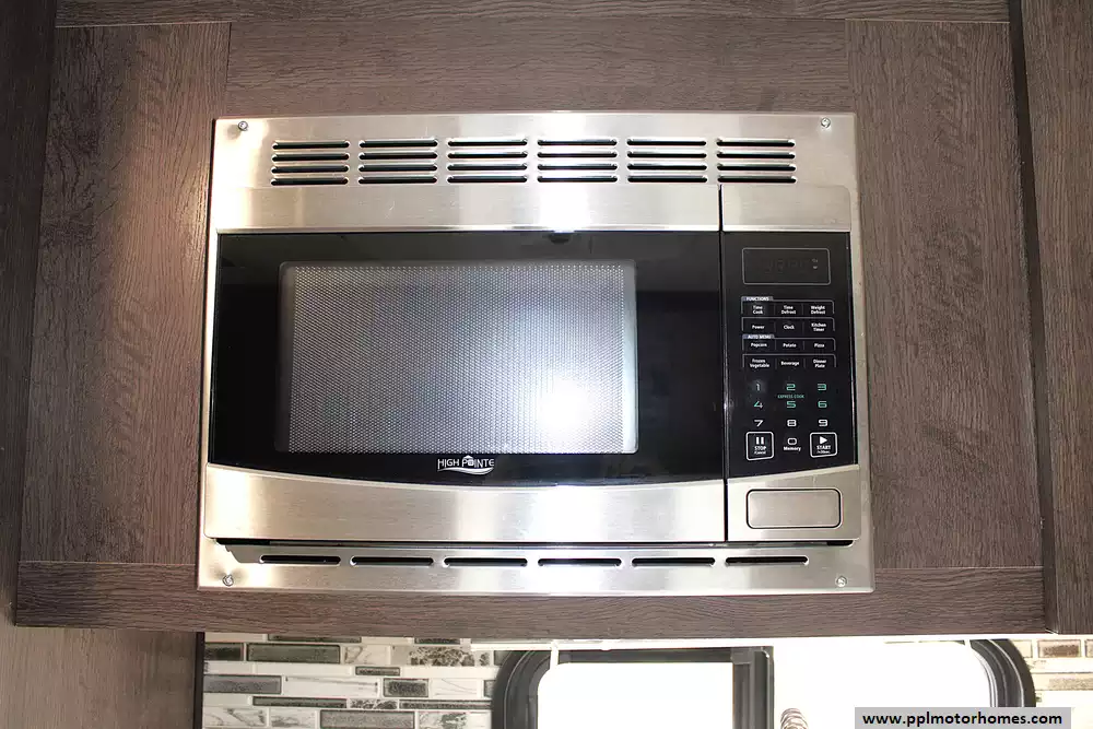 Inside, you'll find all the essential features needed for a comfortable camping experience. The kitchen is equipped with a cooktop, microwave, refrigerator, and sink, along with overhead cabinetry for convenient storage. The spacious rear bathroom is a standout feature for a unit this size, offering a full shower, toilet, vanity, and additional storage space. Additional features include roof-mounted A/C, furnace, water heater, exterior awning, pass-through storage, and entertainment hookups, making this camper both practical and enjoyable for weekend getaways or extended trips.