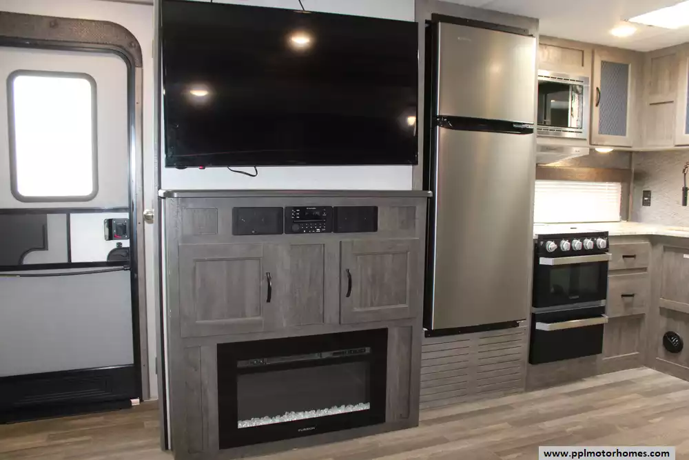 Experience the perfect blend of modern luxury and practical design with this 2020 Vibe 28RB. Renowned for its spacious rear-bath layout and high-end residential feel, this 33-foot travel trailer is built with a durable fiberglass body and a reliable rubber roof. The dual slide-outs significantly expand your living area, creating an open atmosphere complemented by large windows and a cozy fireplace. Whether you are hosting friends or enjoying a quiet getaway, the interior is equipped for total comfort with a TV, DVD player, and a dual air conditioning system featuring both ducted and non-ducted units to ensure you stay cool in any climate.