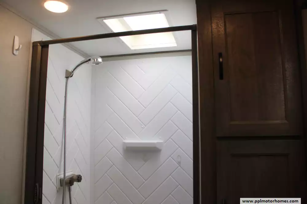 Specs: Length: 34 ft., Height: 11.2 ft., Payload Capacity: 3,107 lbs., Total Fresh Water Tank Capacity: 40 gal., Total Grey Tank Capacity: 90 gal., Total Black Water Tank Capacity: 30 gal.