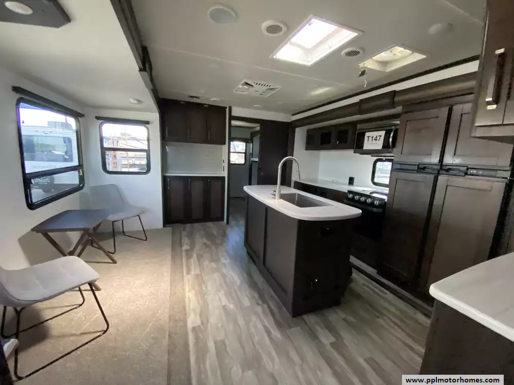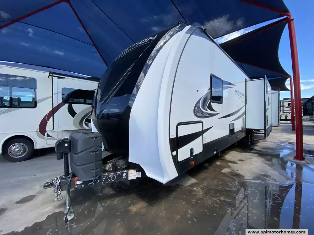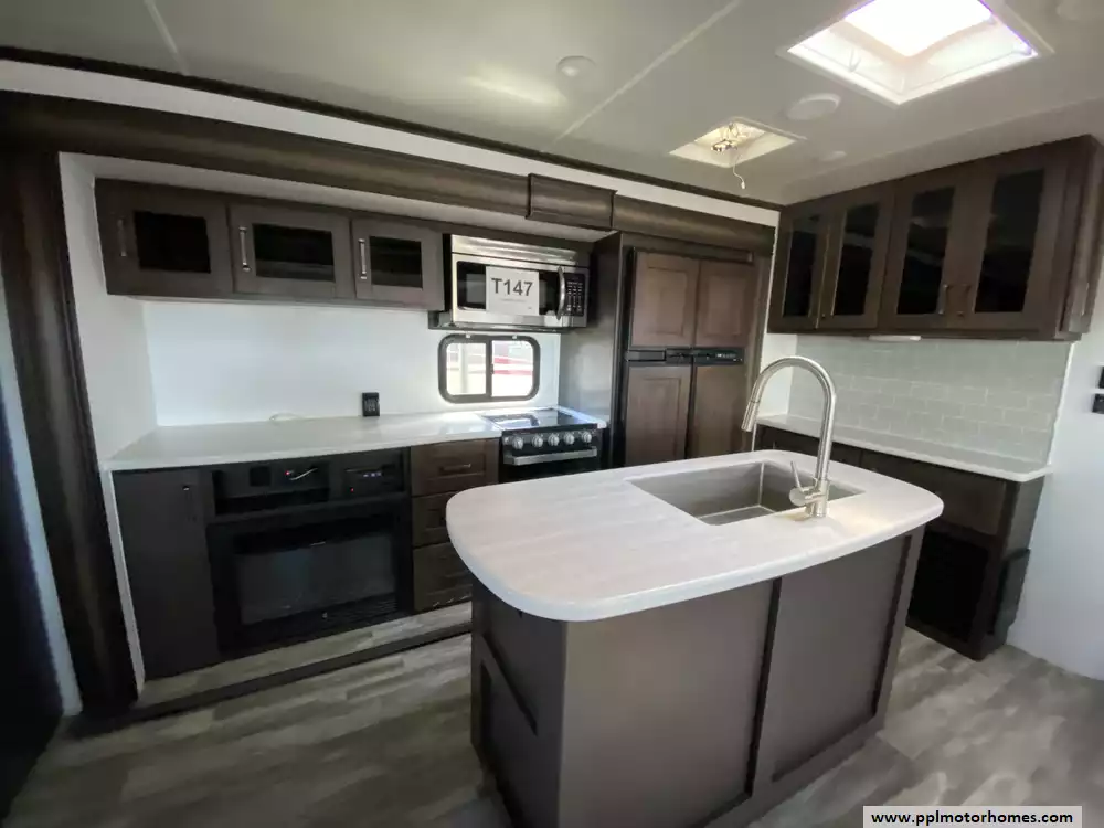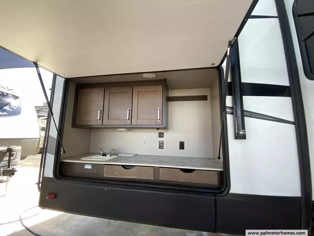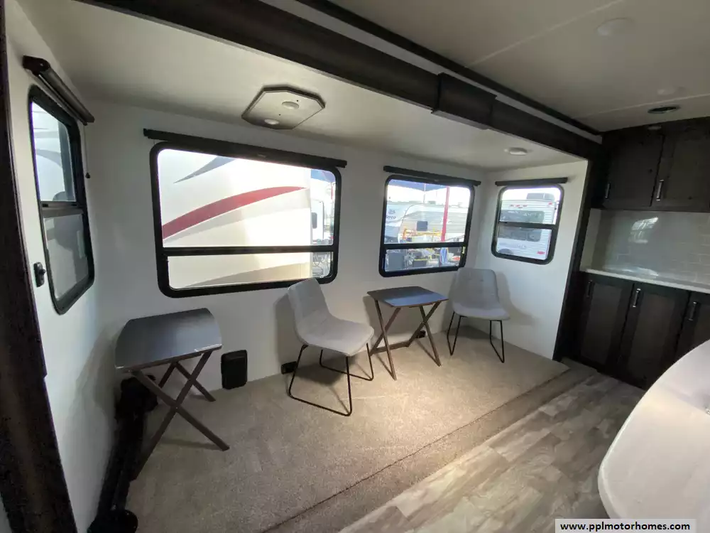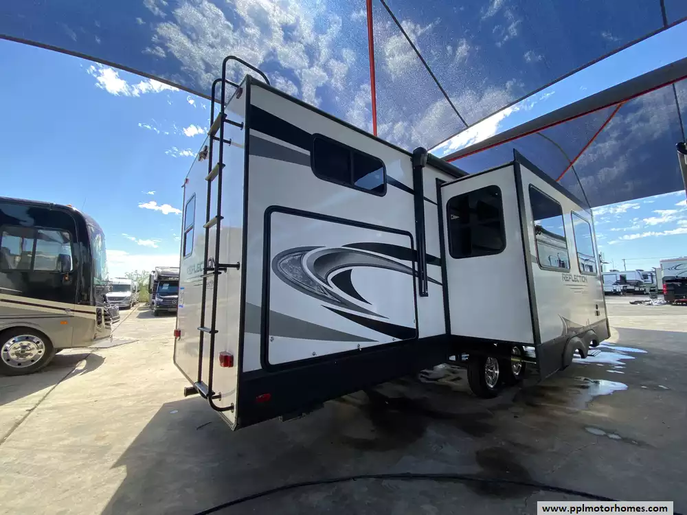 This 2020 Reflection 312BHTS has an Electric Tongue Jack, 3 Slide-outs, 2 Ducted Air Conditioners, 4 Door Gas/110v Norcold Refrigerator, Automatic Main Awning, Outside Speakers, TV, Outdoor Kitchen, Outside Shower, Fireplace, Microwave, 3 Burner Range, Oven