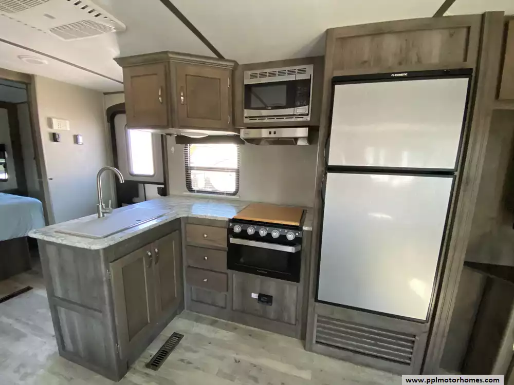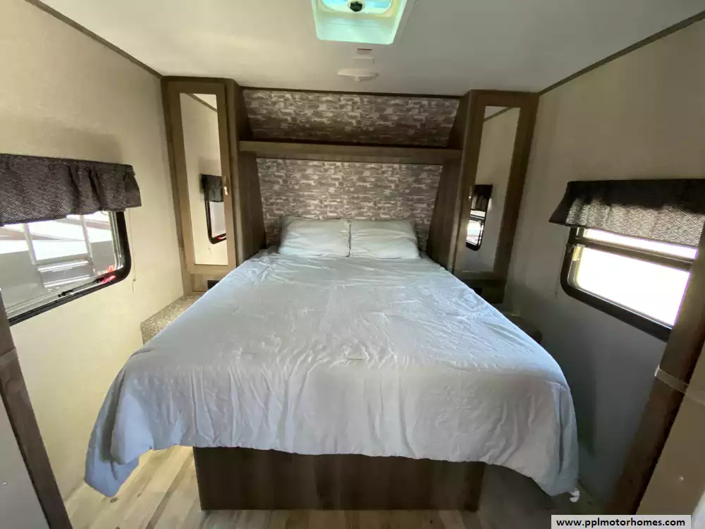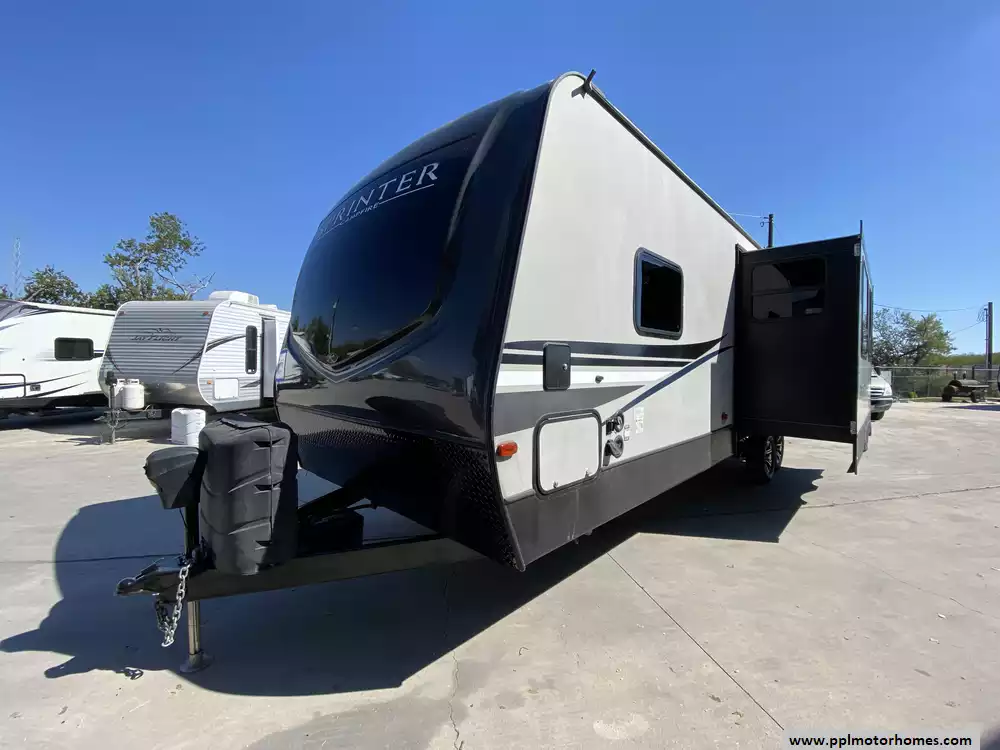 This 2020 Sprinter Campfire 29DB has an Electric Tongue Jack, 1 Slide-out, 1 Ducted Air Conditioner Less than 2 years Old, Double Door Gas/12v Dometic Refrigerator, Automatic Main Awning,Wireless Remote Function for Awning and Stabilizer Jacks, Satellite Dish, Outside Speakers, TV, Microwave, 3 Burner Range, Oven